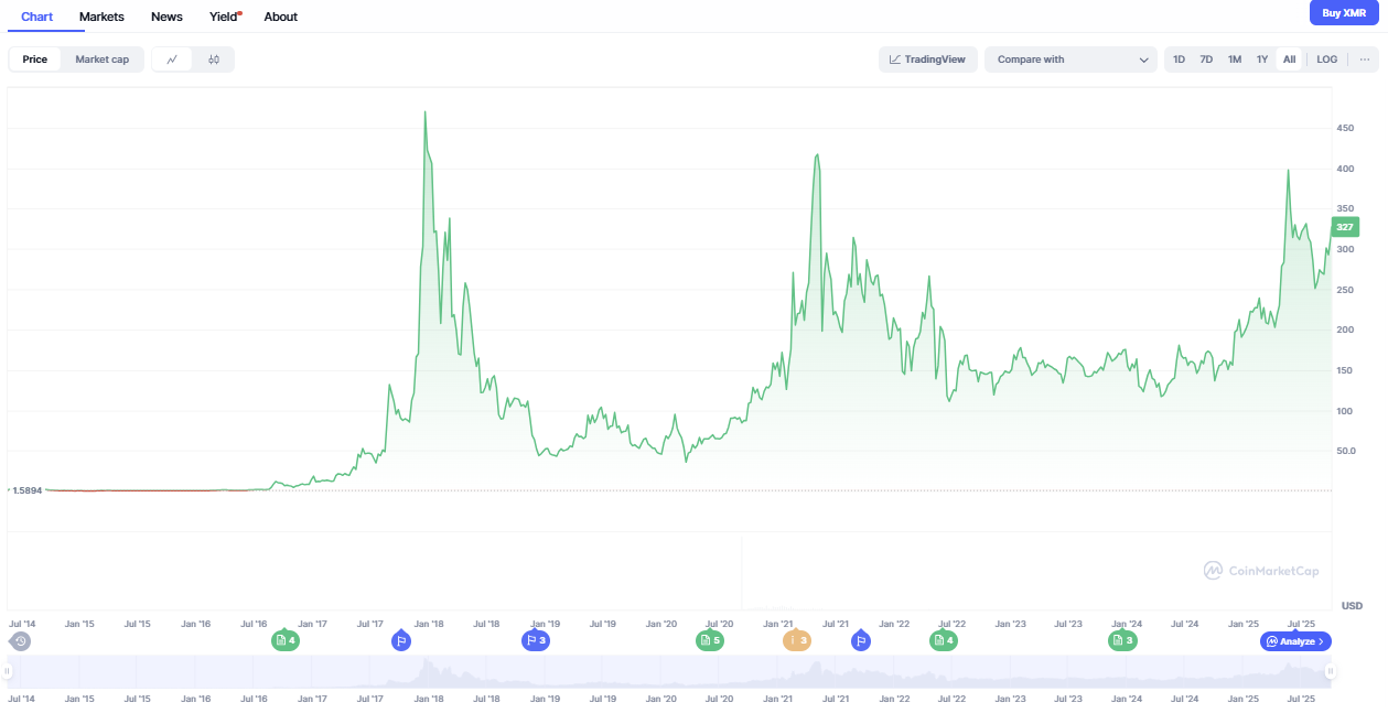 Принятие в "реальном мире": XMR остается одной из самых популярных криптовалют для онлайн-платежей в сегментах, где приватность критична, а также среди энтузиастов, ценящих свободу.