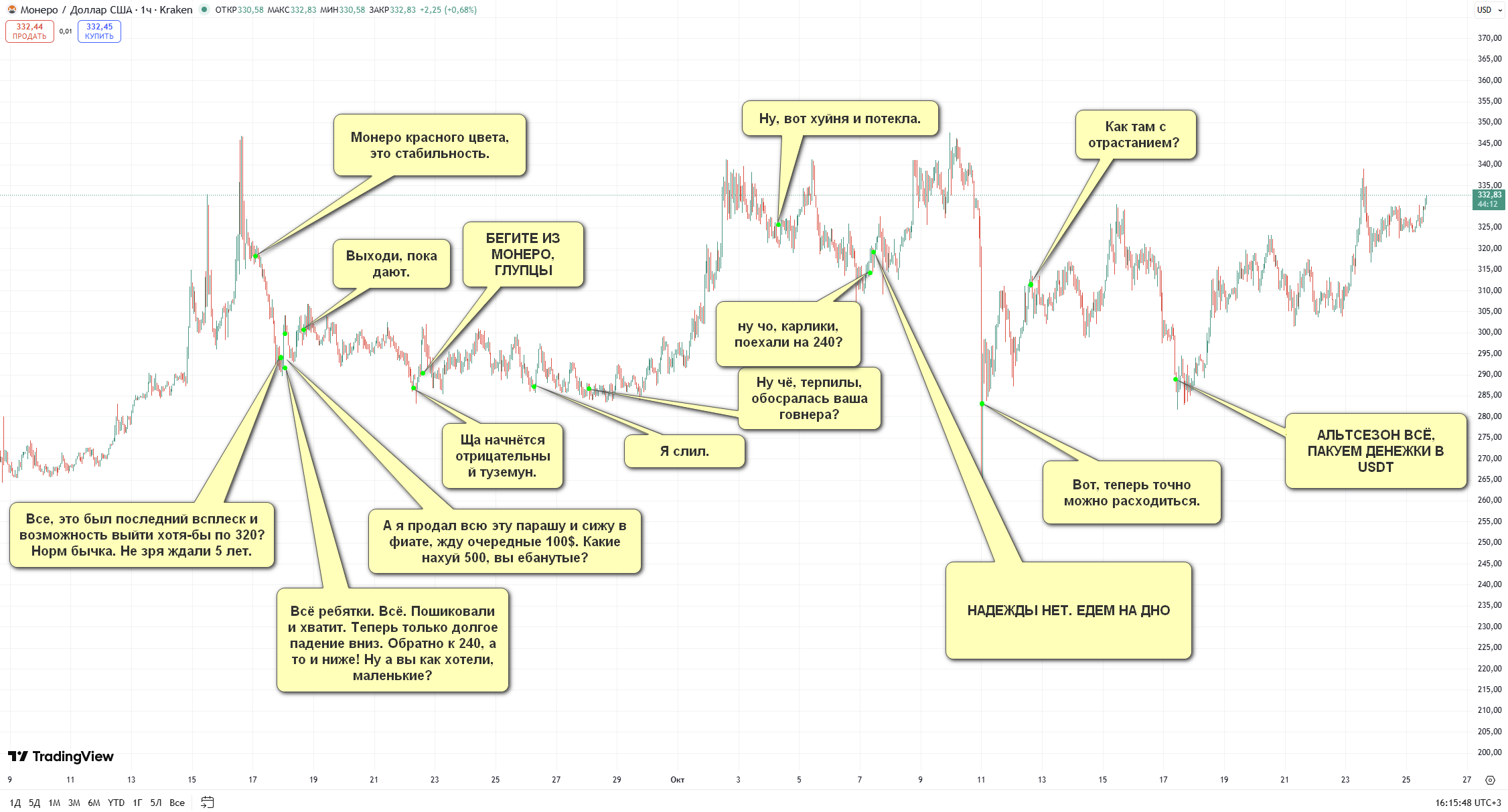 И только я один всю дорогу говорю - монеро будет жить. И монеро будет выше. И оно не умрёт.