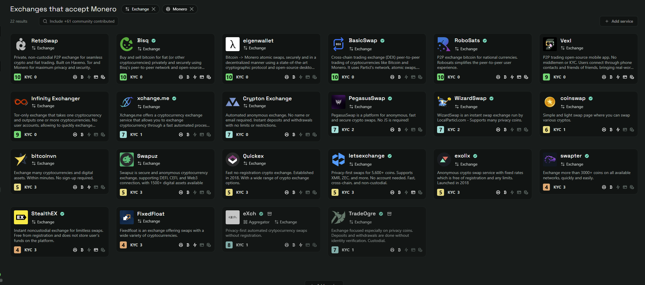 >Localmonero окуклился, exch окуклился, сколько просуществует retoswap который в соло держится одним админом с именем и фамилией ? Так пусть куклятся. Нехуй кучковаться в одном месте. Эти темы "смотрите, на этой площадке огромная ликвидность" привлекают регуляторов и разных хакеров, разные блогеры скрины в твиттер постят, ну и всё, практической пользы это не несёт. Я свои пару лямов рублей в месяц спокойно меняю на монеро и обратно и мне всегда хватает ликвидности на обменниках с бестченж. Вы по 100 лямов меняете в месяц? Ну моё увожение тогда. Для вас подходит биток, а потом уже своп на монеро. А может и просто биток с кастомными миксерами.