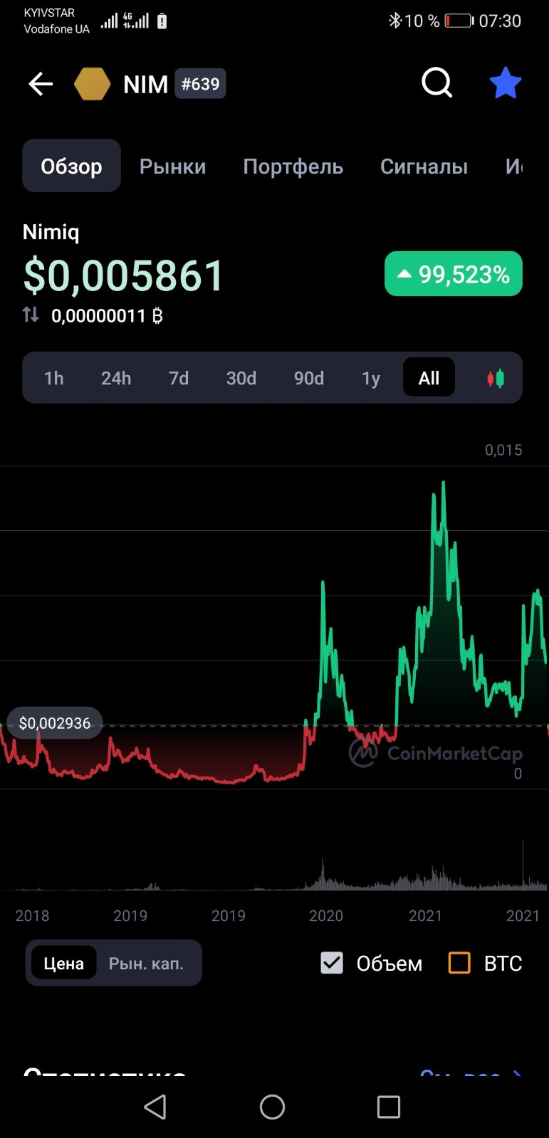 Мне реально интересно >>750403 (OP) >Цена на момент создания треда чуть меньше одного цента (0.01$) при потенциальной капе в 21ккк (на данный момент что то около 9ккк). Цифры рандомные взял? Маркет капа 75 миллионов (при полностью выпущенной эмиссии 180), откуда у него может быть 21 миллиард капы?