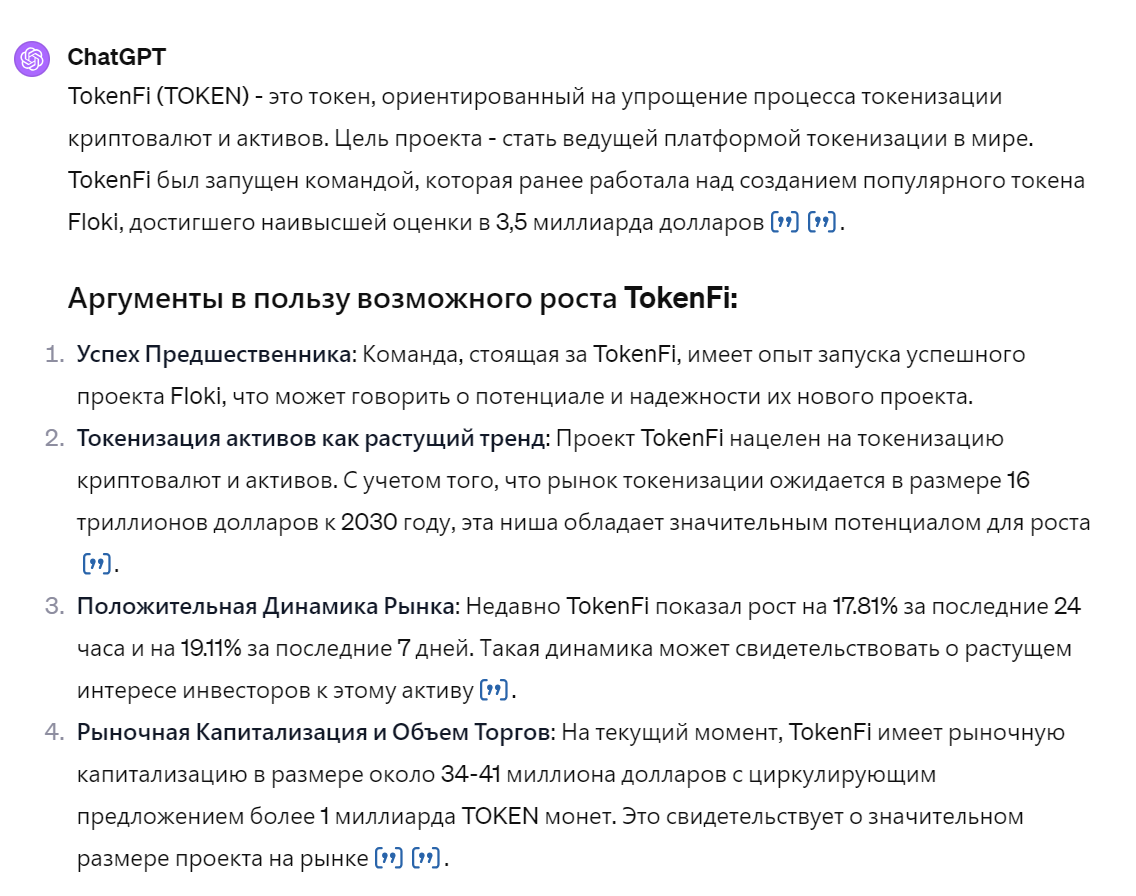 в 4-м квартале 2023 запустят QuickLaunch Bot, TokenFi Launchpad, TokenFi Staking. в 1-м квартале 24-го Generative AI, AI Smart Contract Auditor и RWA Tokenization Module.