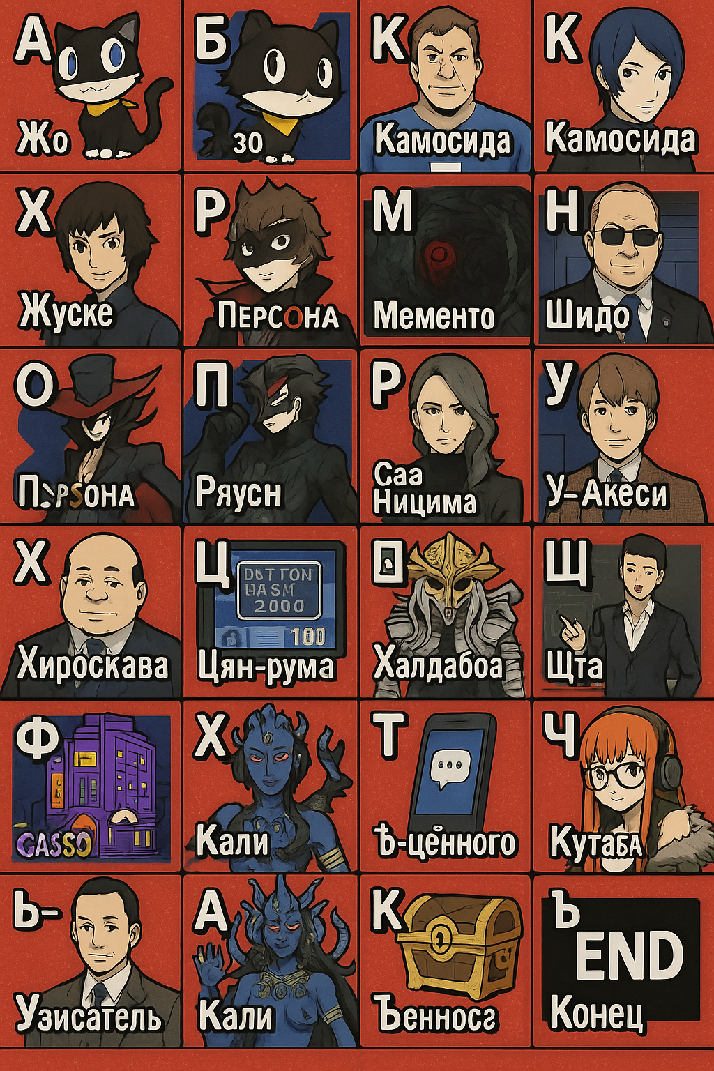 >https://megamitensei.fandom.com/wiki/List_of_Persona_2:_Eternal_Punishment_Demons При этом левел младших персон в этих арканах ощутимо ниже, и к моменту возможности получения этих карт естественным путём (т.е. через переговоры с демонами) крафтить их уже не будет никакого смысла - зачем мне 30лвл персона в эндгейме? Возможно, странный вопрос, но может есть альтернативный способ получить карты? Не считая заказать у артиста - там зачастую солидное трёхзначное число карт требуется, ебанёшься столько пустых собирать же.