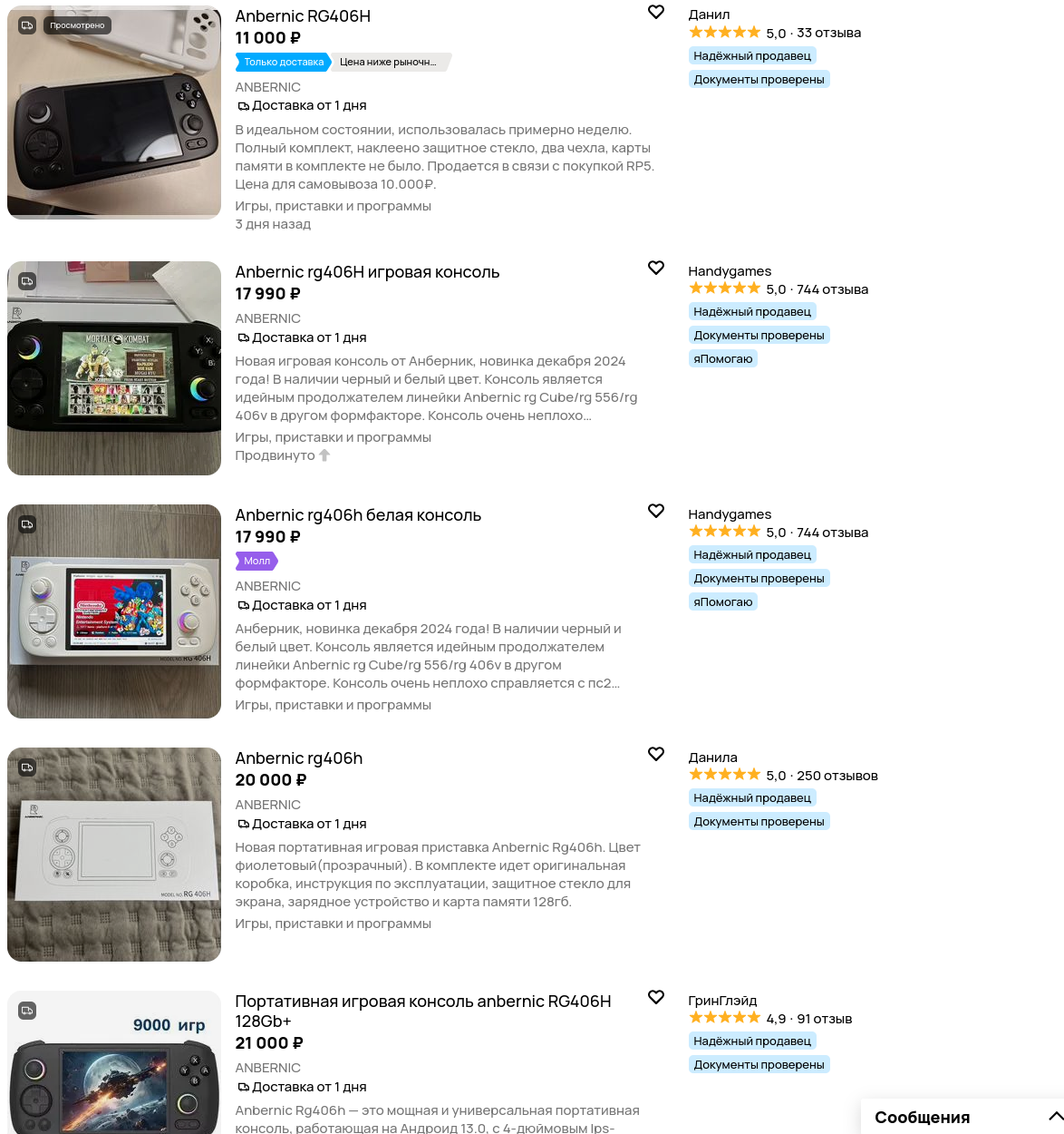 >>2523547 А с Авито какая-то хуета происходит. Большинство объявлений имеют цену либо как на озоне, либо выше на несколько тысяч. А когда всё-таки какие-то реально выгодные предложения попадаются, там либо уже зарезервировано, либо нет доставки из ебеней. ХЗ, может перепуки какими-то лютыми скриптами-автоинформаторами оперируют. Первое объявление, если что, уже зарезервировано.