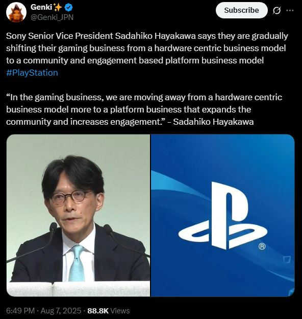 Тоесть ничего не поменялось, если перевести слова этого япошки в галстуке на человеческий то так как они доминируют на рынке хоум консолей им не важно количество железок а сколько пользователи этой железки тратят денег на их контент, игры и сервисы, тоесть engagament, причем не стоит забывать что сони важный игрок в киноиндустрии а так-же важная роль в цифровой дистрибуции мейнстрим аниме (кранчиролл и прочее). Типа если раньше нужно было наделать хороших экзов чтобы продавать больше консолей то сейчас в этом особой нужды нет, это не означает что экзов не будет, хермен хюльст говорил недавно что у них план выпускать как минимум один крупный тайтл (gow, хорайзон и тд.) в год. Кароче щас виталямбы и мишани из ixbt и им подобные журнашлюхи сделают перемогу из фразы без контекста, и сони у которой рекордное по профиту поколение - точно ВСЁ.