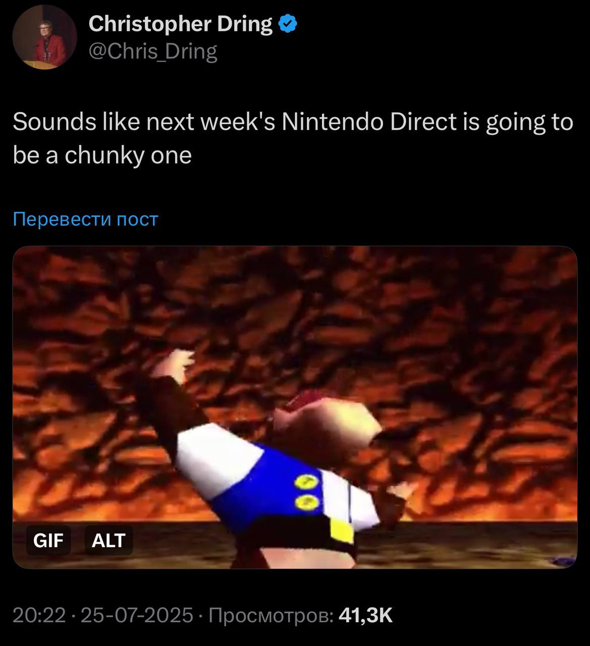 Из Малайзии пришёл слух, что Splatoon Raiders выйдет в 2025. Пиздец, линейка у Нин просто разъебная. Готи Марио Карт, готи ДК, Кирби Гоночки, Зельда, Покемоны, Метроид Прайм 4, Сплатун. ЭТО ТОЛЬКО НА ПЕРВЫЕ ШЕСТЬ МЕСЯЦЕВ и без учета сторонних экзов вроде Лейтона. Ебануться можно! А на 2026 уже анонсирован новый эксклюзивный Миядзаки и новая полноценная часть Rhythm Heaven. Малышка Нина решила выжать мой кошелек досуха.