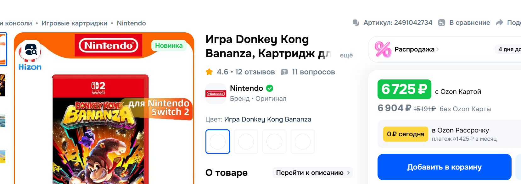 > И от тех же энтузиастов стало известно, что картридж Donkey Kong: Bananza работает на консоли Switch 2 из коробки, без обновления прошивки, даже на релизной 19.1.0.