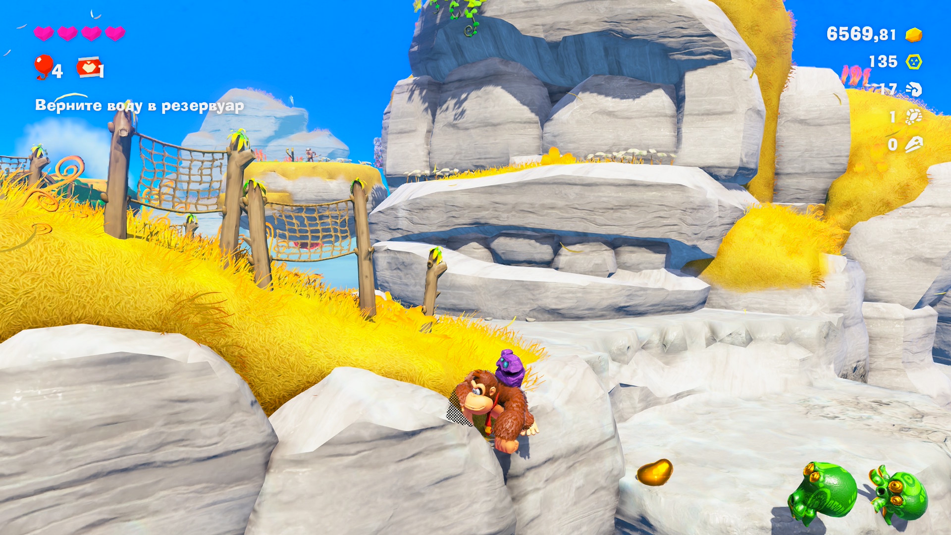 Погирал немного в бибизяна, дошёл до завода с "жирафами". Прикольно, но не умопомрачительно. Играл только в портативе. Из хорошего: - понравилось шароёбиться по уровням и перекапывать горы; - некоторые испытания забавно ломаются из-за возможности сделать подкоп под уровнем; - выглядит приятно, в глаза ничего не бросается. Но есть просадочки; - переключил озвучку на английский спустя пару часов, не очень понравилась ру озвучка Полины, англ норм. Из плохого: - заёбывает анимация поедания бананиума, особенно когда покупаешь за дольки больше чем один. - очень не нравятся "шарики": обычно при падении с уровня у нас отнимают чутка здоровья и кидают на край обрыва, тут же гении додумались прикрутить на эту механику расходники и если они у тебя заканчиваются, с тебя снимают золото и кидают на последний чекпоинт; - ползание по стенам работает как-то нестабильно: периодически отлипаю при попытке перелезть через угол и часто ДК отказывается карабкаться по свежевырытому тоннелю.