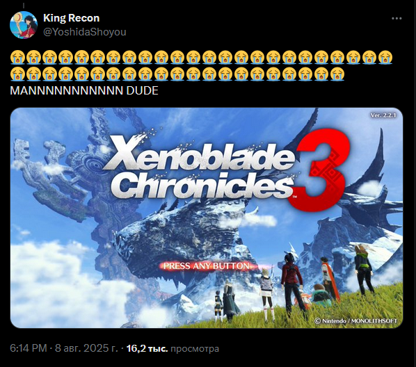 Положняк таков: Xenoblade 1 - аниме для бумеров Xenoblade 2 - аниме для умственно неполноценных Xenoblade 3 - аниме для нормисов Xenoblade X - аниме для Дениса Мейджера PS: На Switch 2 патчей нет