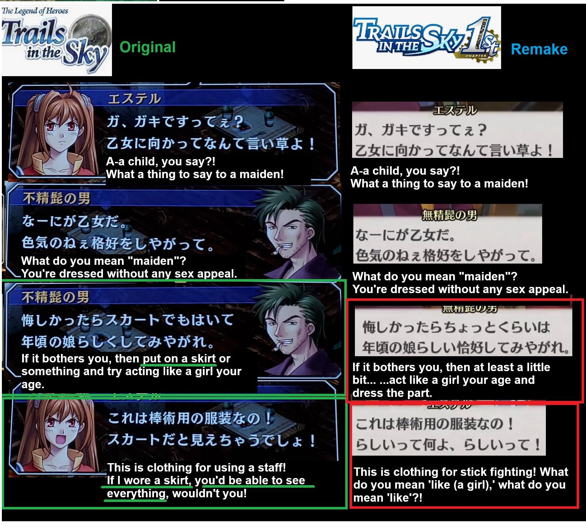 >>2539881 Ну вон ниже анон по полочкам разложил, что не так с «уходом за оружием». >>2539885 Trails in the Sky просто лишился всей своей глубочайшей драматургии из-за того, что переводчик поменял «уход» на «музыку». Бедные геймеры, как они вообще это проглотили.
