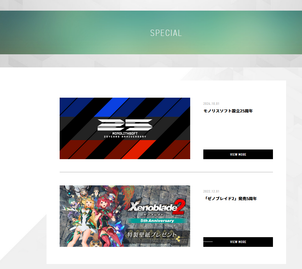 >>2541599 Вообще сайт монолитов довольно интересен. 1) - Главные ребята 2) - Спешл новости, это 5летие Вторых блейдов и 25летие Монолитов 3) - Ну и конечно же список игр ( https://www.monolithsoft.co.jp/games/ )