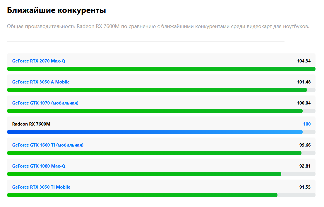 >>2559686 Ошибся, там и стоит RX7600M. Потребление 90Вт. Видимо оверклокнули чтобы при пике 110 Вт потребляла, он наверняка будет сбрасывать из-за температуры уже через 10 минут до 90Вт.