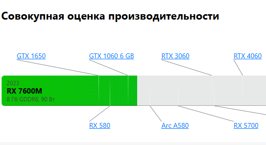 >>2560013 >Да даже если производительность будет на уровне между 7600 и 6600 Как хорошо, что никто не знает что видеокарта в говносборке RX7600M, которая по мощности как GTX 1660.