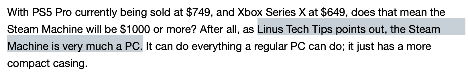 >>2559811 Доплачиваешь за форм-фактор. Оно будет дороже, чем собрать самому, минимум на 100$. Ты сам такой формы компьютер не соберешь. Фанаты Вальве купят даже за 800 долларов.