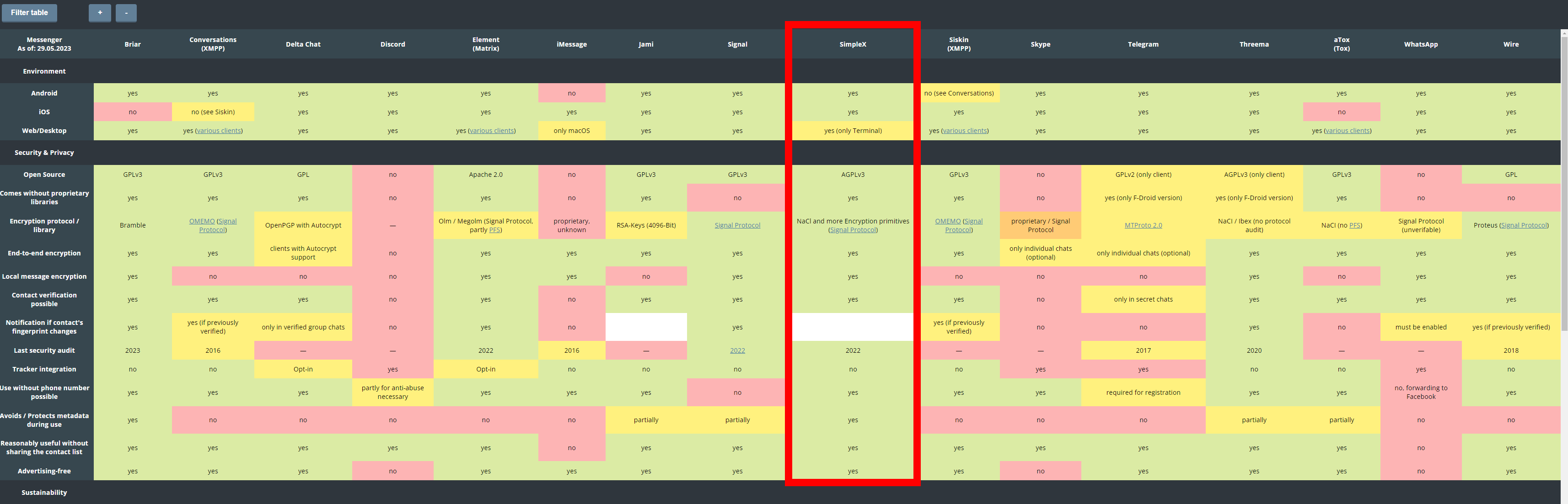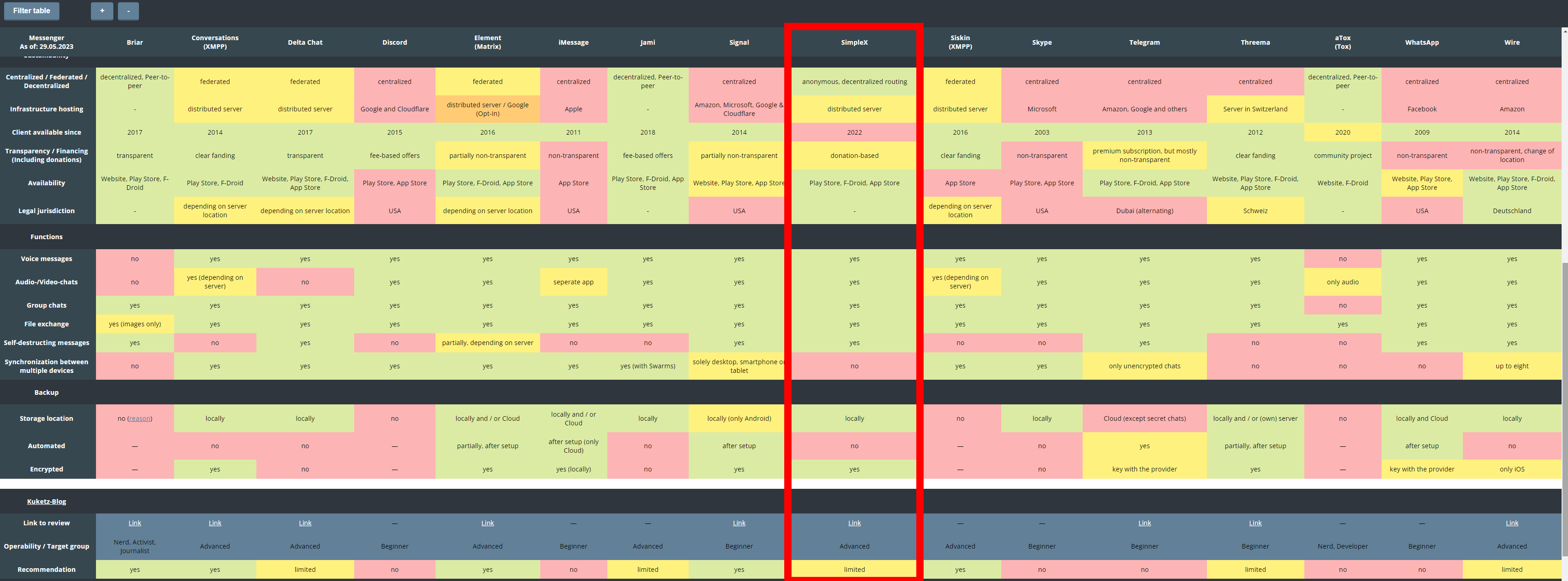 В ходе обсуждения в /s/ в https://2ch.hk/s/res/3118777.html пришли к мнению, что SimpleX - единственный из незашкваренных мессенджеров.