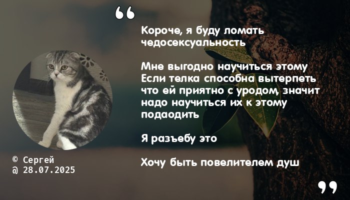 Чат, посвященный поиску второй половинки и налаживанию совместной жизни с ней. Луксмаксимся, оцениваем внешность, анкеты и переписки друг друга, даем советы и адекватную обратную связь, травим кулстори о свиданиях и отношениях. Токсичных озлобленных анонов не приветствуем, остальным рады.