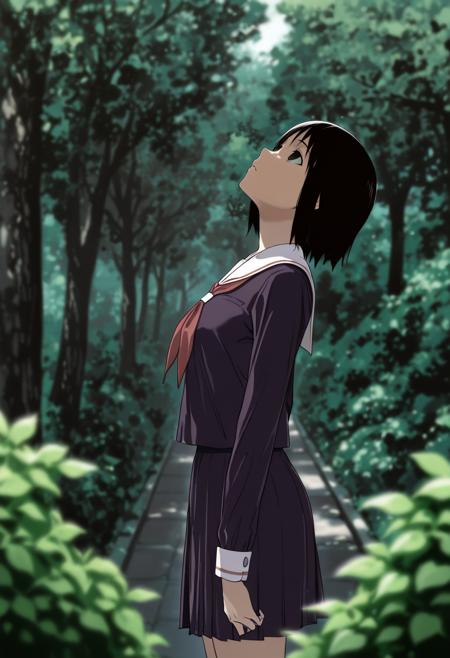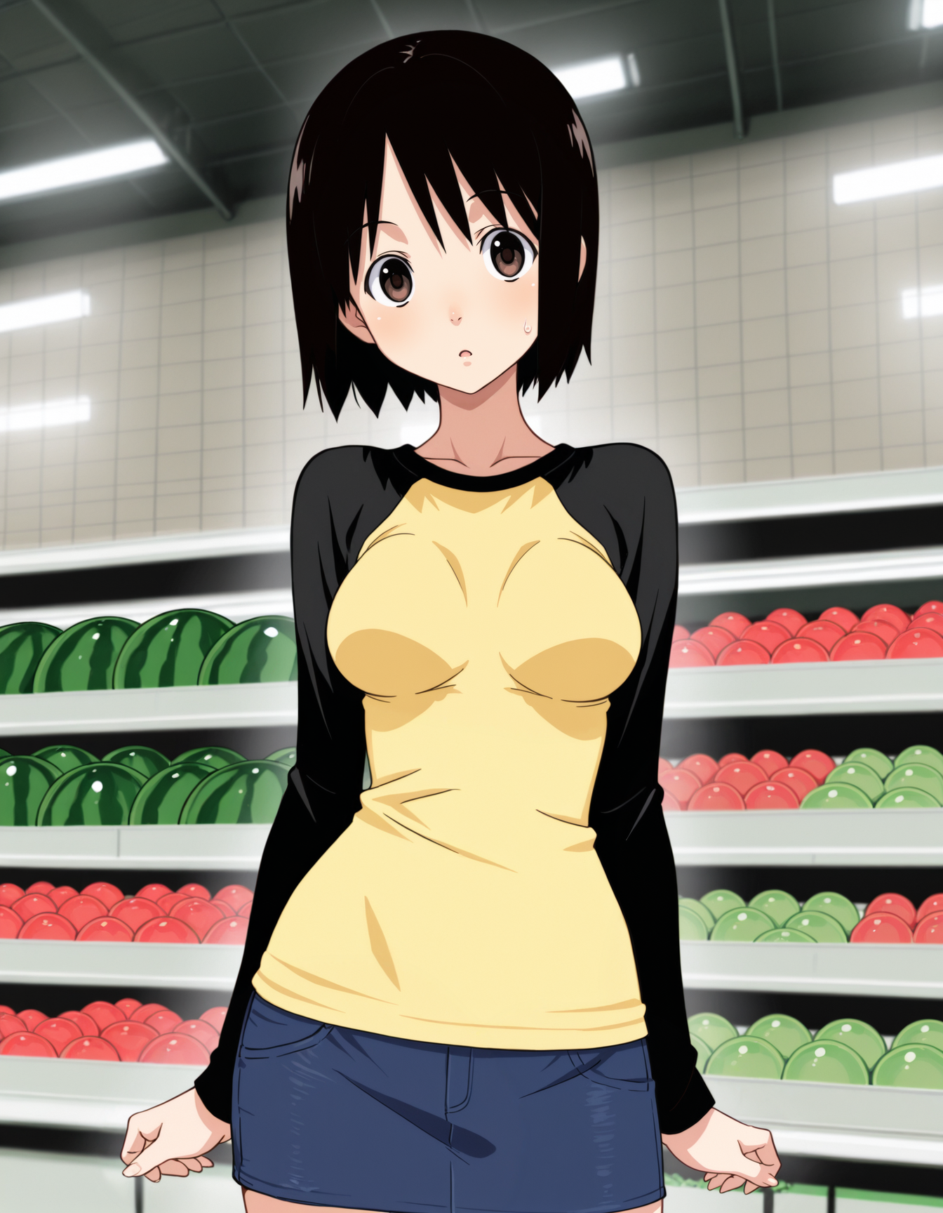 Я сейчас ходил гулять и встретил ирл-Мисаки. Она стояла передо мной на светофоре, и сначала я видел её только со спины. У неё была точно такая же футболка, как у Мисаки в аниме, с рукавами реглан. Только основание было не жёлтым, а белым. Причёска была тоже как у Мисаки, только волосы были русыми, и они более свободно болтались в разные стороны. Вместо миниюбки на ней были длинные черные джинсы с очень большими подворотами.