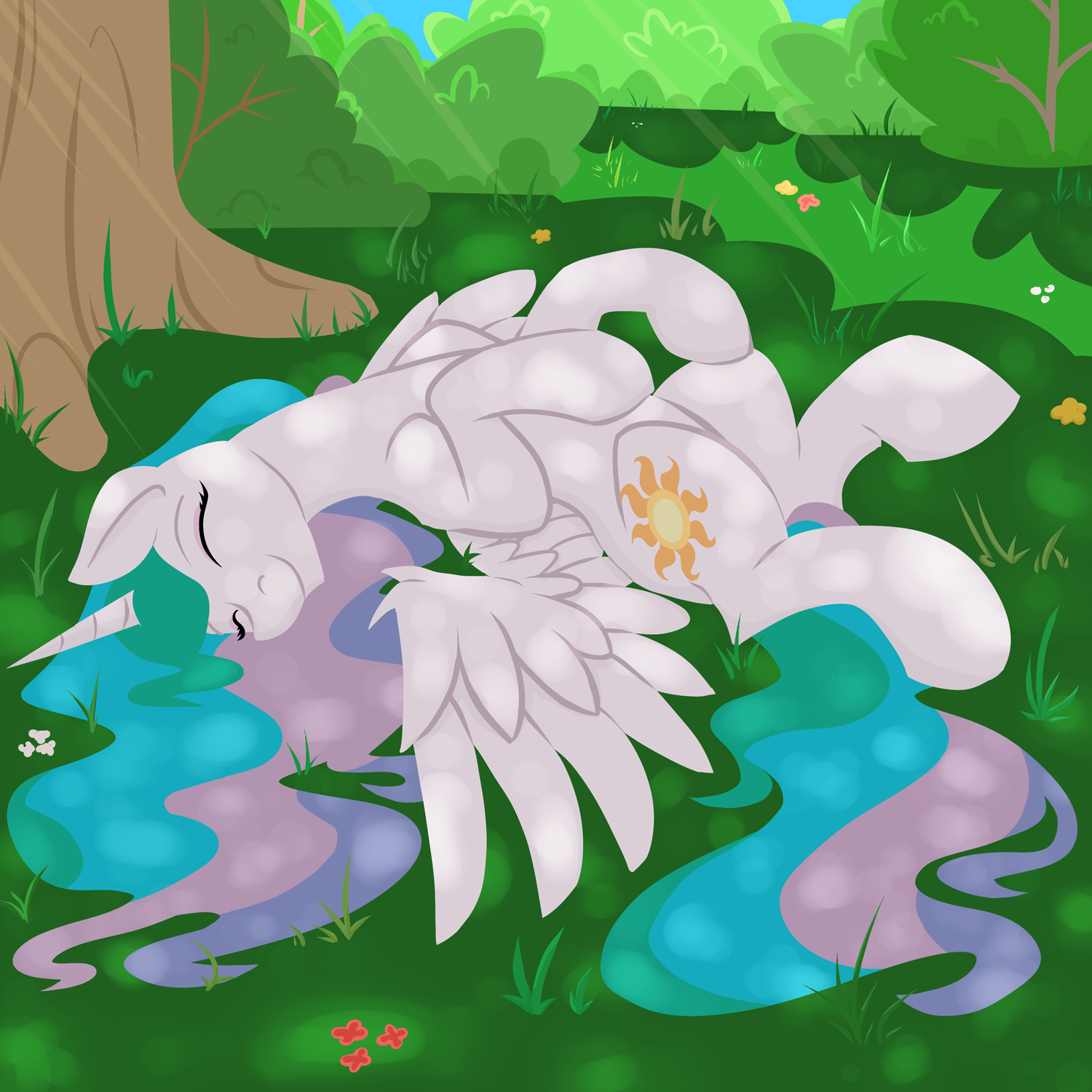 Приведя в порядок гриву любимой, ты отложил щётку и осторожно, чтобы не разбудить, снял поняшу с колен. Лёг рядом с ней и прижал к себе, поглаживая по голове. Чувствуя на своём лице мерное, тёплое дыхание любимой, ты и сам, вопреки ожиданиям, проваливаешься в сон. Спокойный и золотистый, как утренний свет, льющийся из окна.