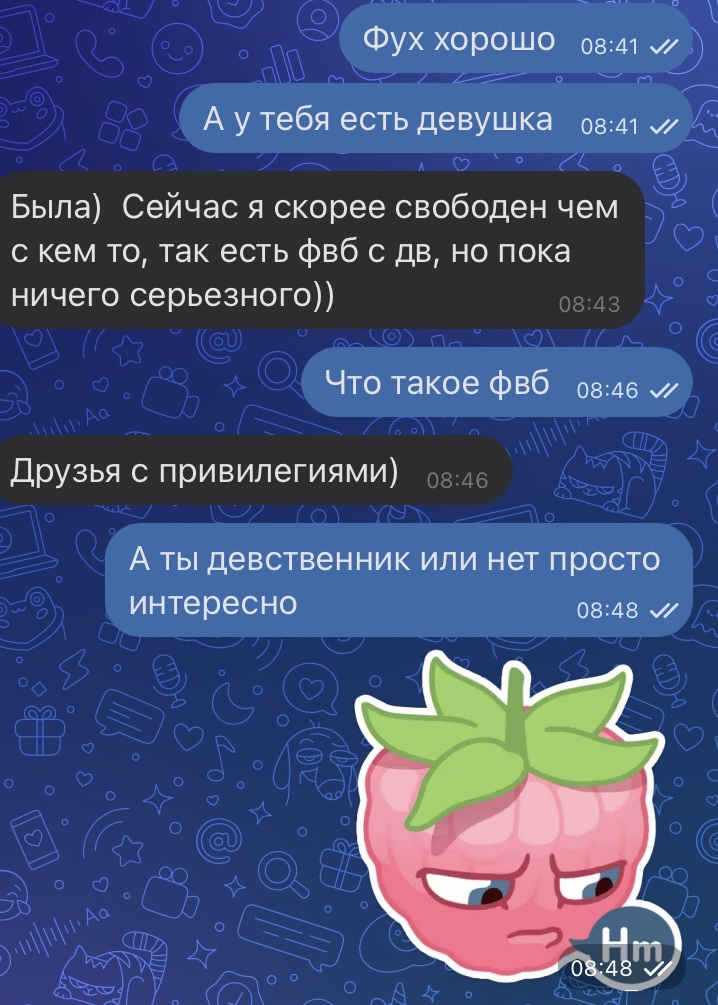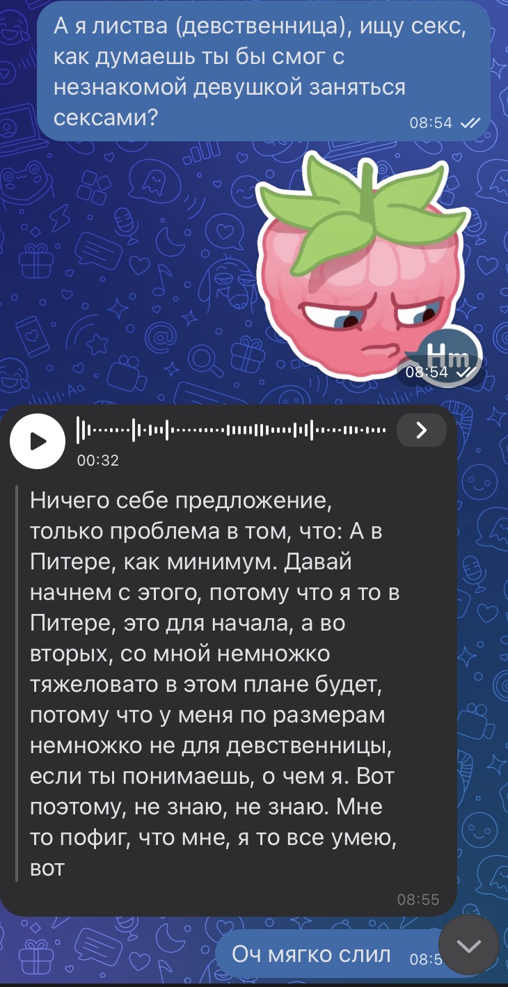 Всем прив ^\^! Почему никто не обсуждает INFP тип личности? Самый обделенный тип личности во всех проявлениях, и тру фемцелки имеют именно этот тип личности. Я инфп и меня травит общество, я всегда была weird girl и всех фемцел которых я знаю тоже INFP с приставкой T Банальный пример , я тру фемцел и предложила секс саб3 парню, на что он сливает меня, скрины вы видите на экран. Ебаться я с ним не собиралась, но теперь вы понимаете как жестока эта жизнь к инфп тру фемцелкам. В чем я не права? Вот мое гс что я не трап и не чулочник 👉🏻 https://voca.ro/19qvKem5YdPw