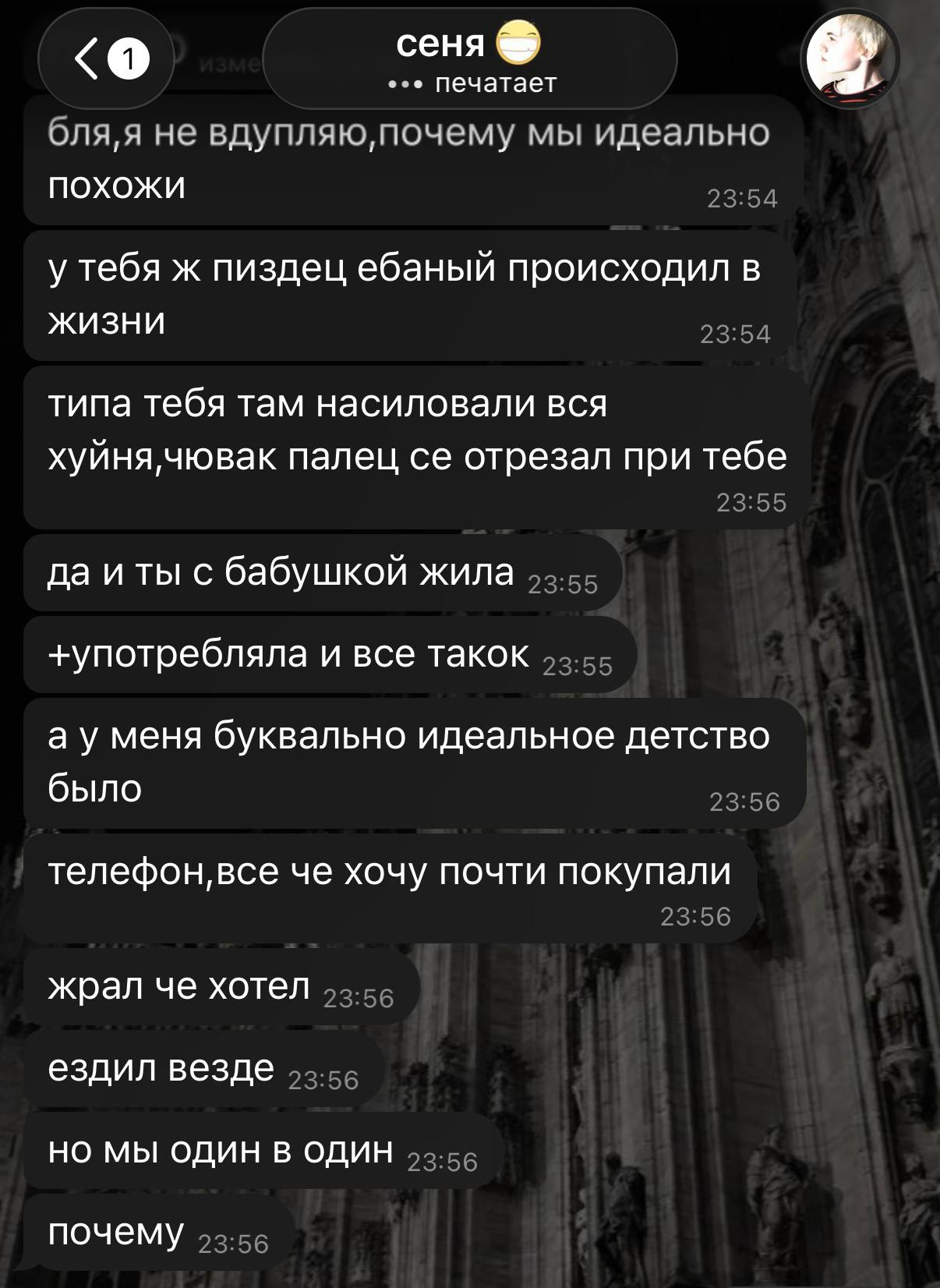 Сап, тянач. Не знаю куда писать, вроде биопроблемый не для этого... Короче, у меня стабильно от 7 часов экранного времени, в среднем 10 часов (когда дел нет). Я пиздец как телефонозависима, он почти постоянно в руках. Куда-то еду - надо открыть тикток или листать тг канал или с кем-то переписываться. У меня, похоже, все друзья такие и мы можем переписываться со всеми 24/7 даже с теми кто работает. Друзья, которые учатся, наверное вообще из телефона не вылезают, как, в принципе и я. В дороге на учебу - в телефоне, на учебе - в телефоне, дома - в телефоне, за едой - в телефоне, в ванной - в телефоне, перед сном - в телефоне. Меня это так заебало, но я настолько это нормализовала в своей жизни, что не могу без этого. Спокойно обходясь без телефона если комп рядом и мне надо что-то на нем сделать, прост параллельно видео включаю или музыку. Постоянно глаза болят, но я все равно смотрю в экран. Единственное достижение - знаю все мемы и новости и отвечаю за 3 секунды на сообщения. Мне уже даже общаться со всеми впадлу, но машинально все равно телефон в руке.