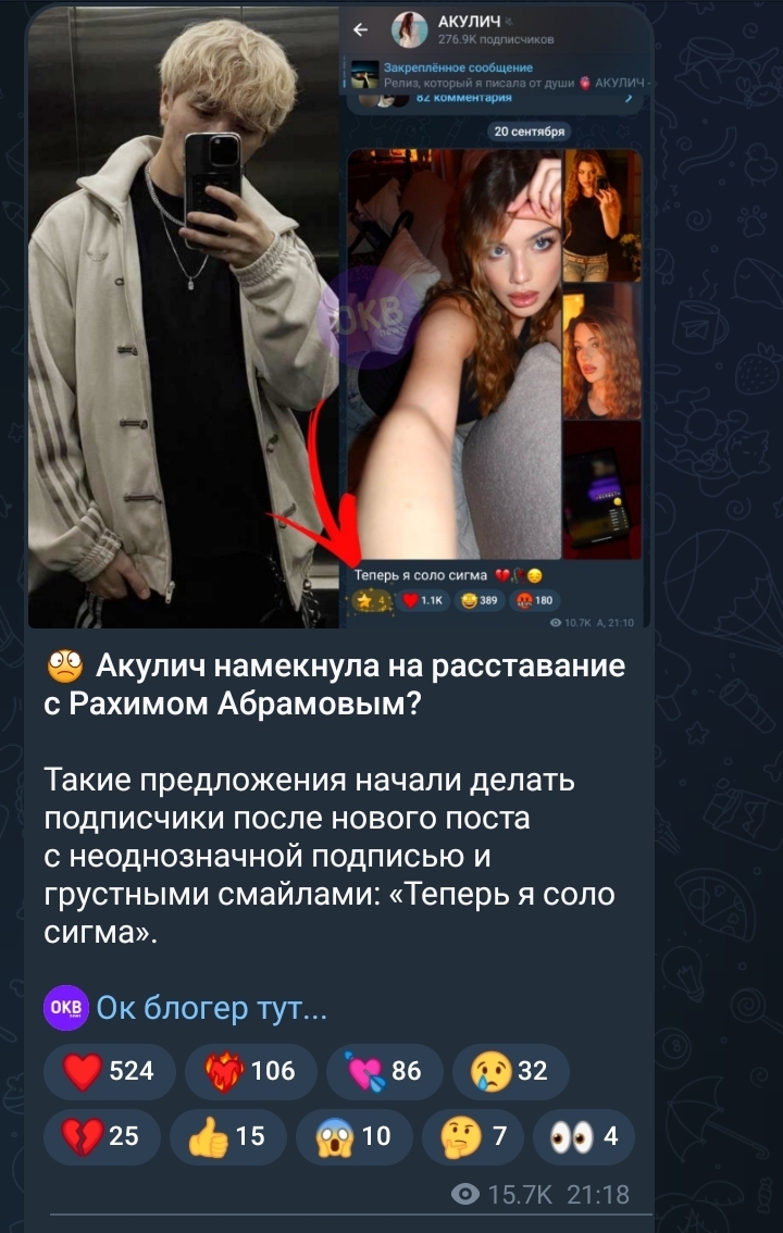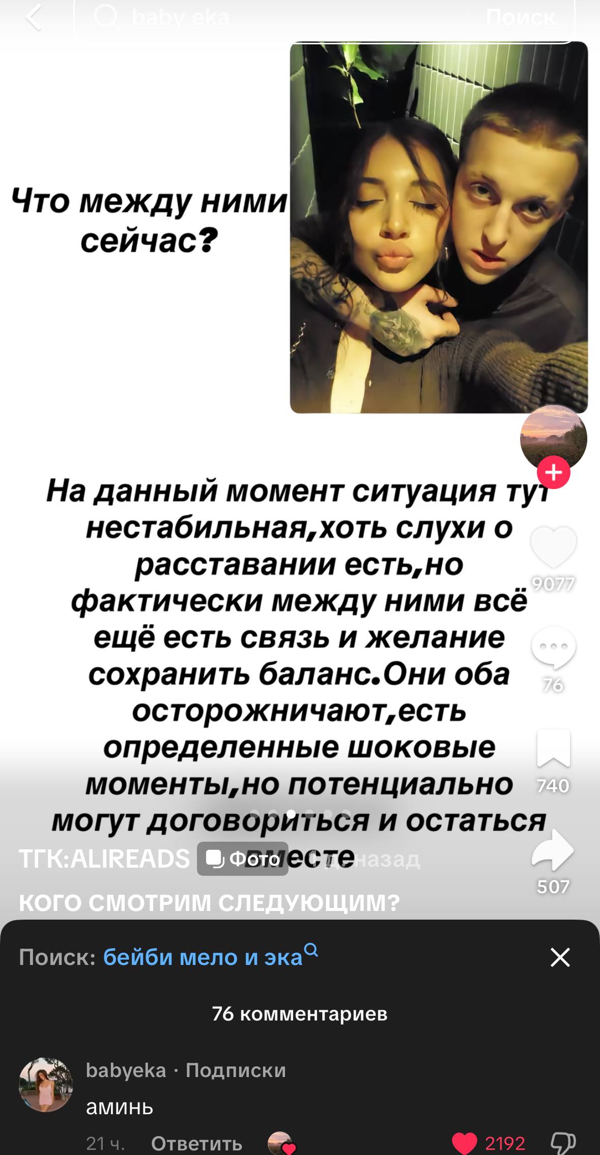 не, они реально походу расстались( был влог с др вадима стаизла в нью-йорке и лиззка туда летала одна + как уже говорили она сейчас живет у поперечных дома и в чате в тгк у лиззки это обсуждали, там можно поискать по поиску "саша" и "расстались", но в какой-то момент там начали так активно расспрашивать, что лиза сама уже нахуй их послала и пару человек отлетело еще они вроде в инсте отписались друг от друга и саша сейчас с какой-то другой девушкой тусуется, в инсте ее фамилию поставила себе