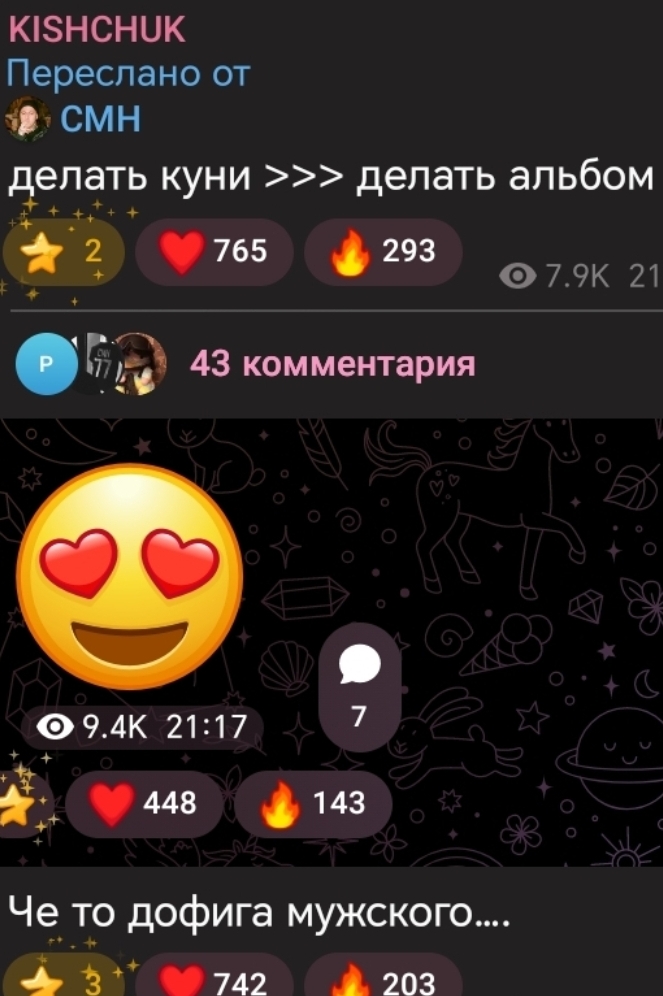 >>6289031 СИС, Я ТОЛЬКО ЭТО ХОТЕЛА НАПИСАТЬ. прям слово в слово мои мысли изложила. мылаши совсем не учатся на своих ошибках лулз. самое смешное что они все ещё верят в отношашки с орзушкой, хотя хряк с ней давно уже не появляется вместе, а если это и происходит (последний раз на кц беби смело месяц назад), то просто стоят рядом. я как бы тоже не утверждаю, то они с кищучкой уже ебутся, но действительно со всеми этими отрицаниями ситуация начинпвет пахнуть цитрусовым романом) имхо но я со стороны хряка какое-то искреннее обожание вижу, чего не было ни с одной из тянок, прям видно как глазки горят