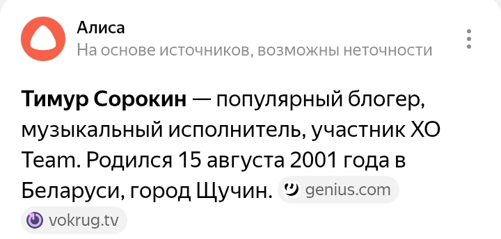 >>6287833 У него в последнее время какая-то мания величия. Недавно на стриме с т2х2 устроил кухонные разговоры за историю. Во время всего действа с невероятной спесью пересказывал школьные знания, которые услышал на ютубчике. И так же горделиво возмущался, что, мол, вот ща тупыыые все, тиктаки смотрят, а то, когда вторая мировая закончилась - не знают. Согласно этому знатоку, кстати, она закончилась в 1947 ахаха