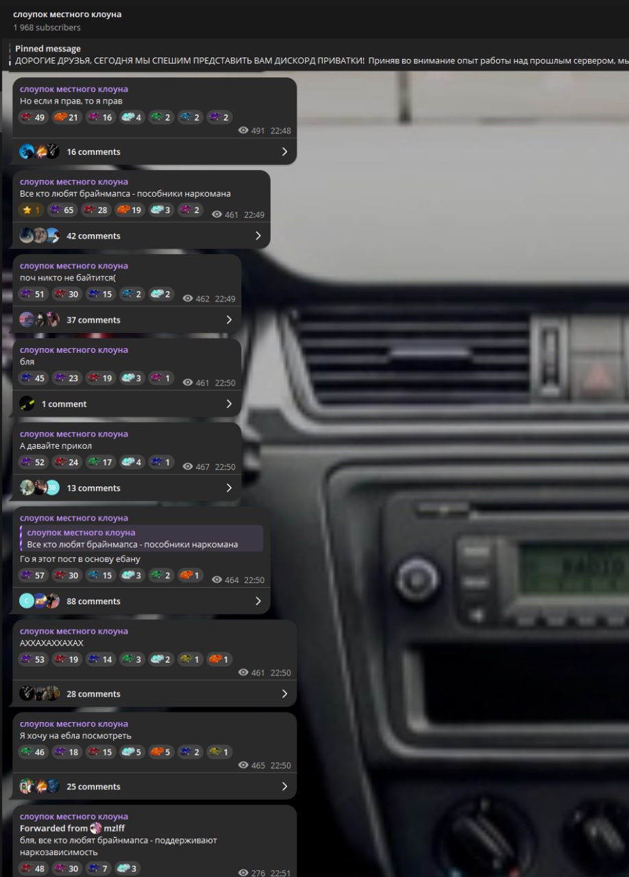 >>6287715 Мразелов это просто Хряк 2.0. По кд шутит про соли и меф, везде видит наркоманов, но почему-то забывает посмотреть в зеркало. Не верю, что он просто алкаш, имхо юзает сто проц. А Брайн наоборот безобидный няш, и за мемы и тренды он шарит, но в основном за омуриканские