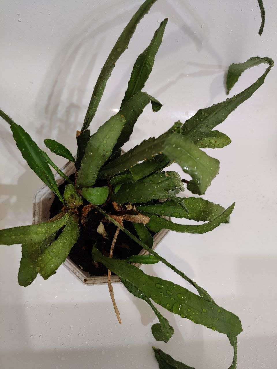 >>5695731 Моя маман разглядела, что растение заражено щитовкой. Это вот редкие тёмные точки на листьях, выглядящие, как высохшие участки листьев в форме точек-кружочков. Избавиться практически невозможно, поэтому будем выселять на улицу.