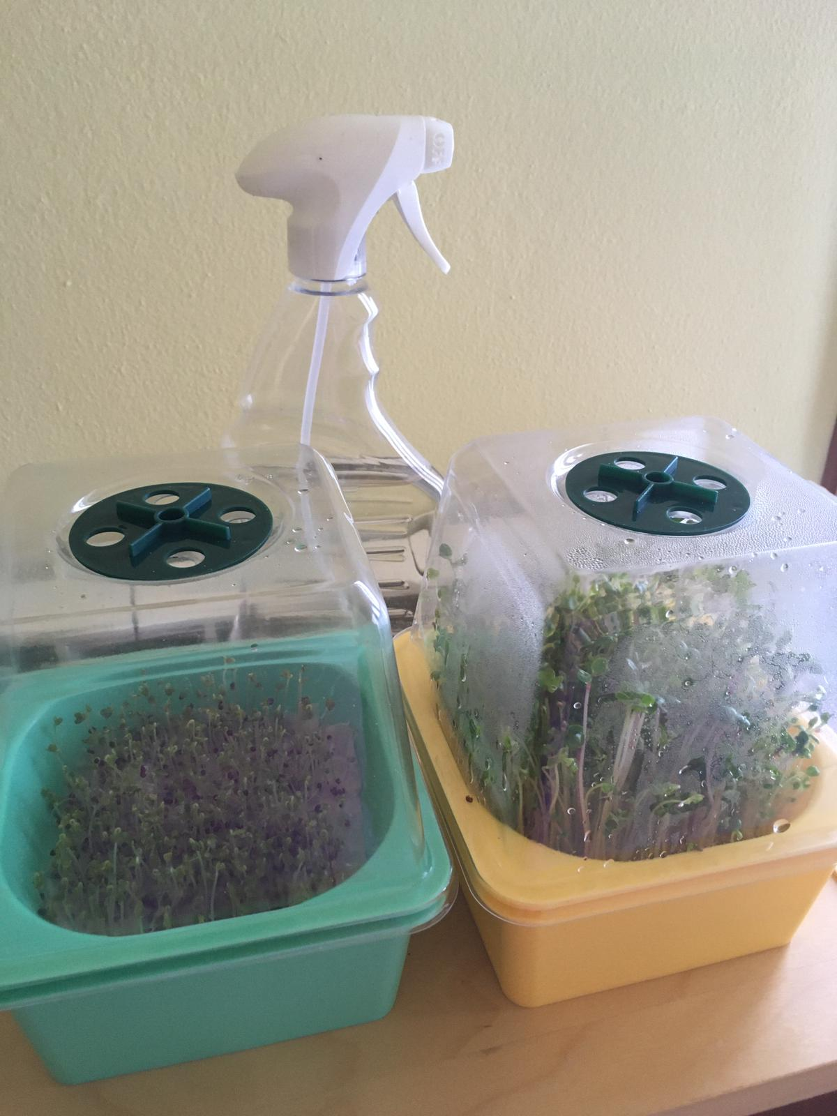 Я заказывала их на амазоне, но у меня с ними была небольшая проблема. Семена помельче проваливались в дырочки и падали в воду. Поэтому в этот раз я положила на дырочки сверху тонкую бумажную салфетку, на нее высыпала семена и опрыскивала их. Когда корни начали расти, начала заливать воду в глубокую часть и менять ее каждый день. На будущее купила мелкую сеточку из пластика, класть поверх дырочек, потому что читала, что салфетки могут плесневеть, хотя у меня пока все нормально.