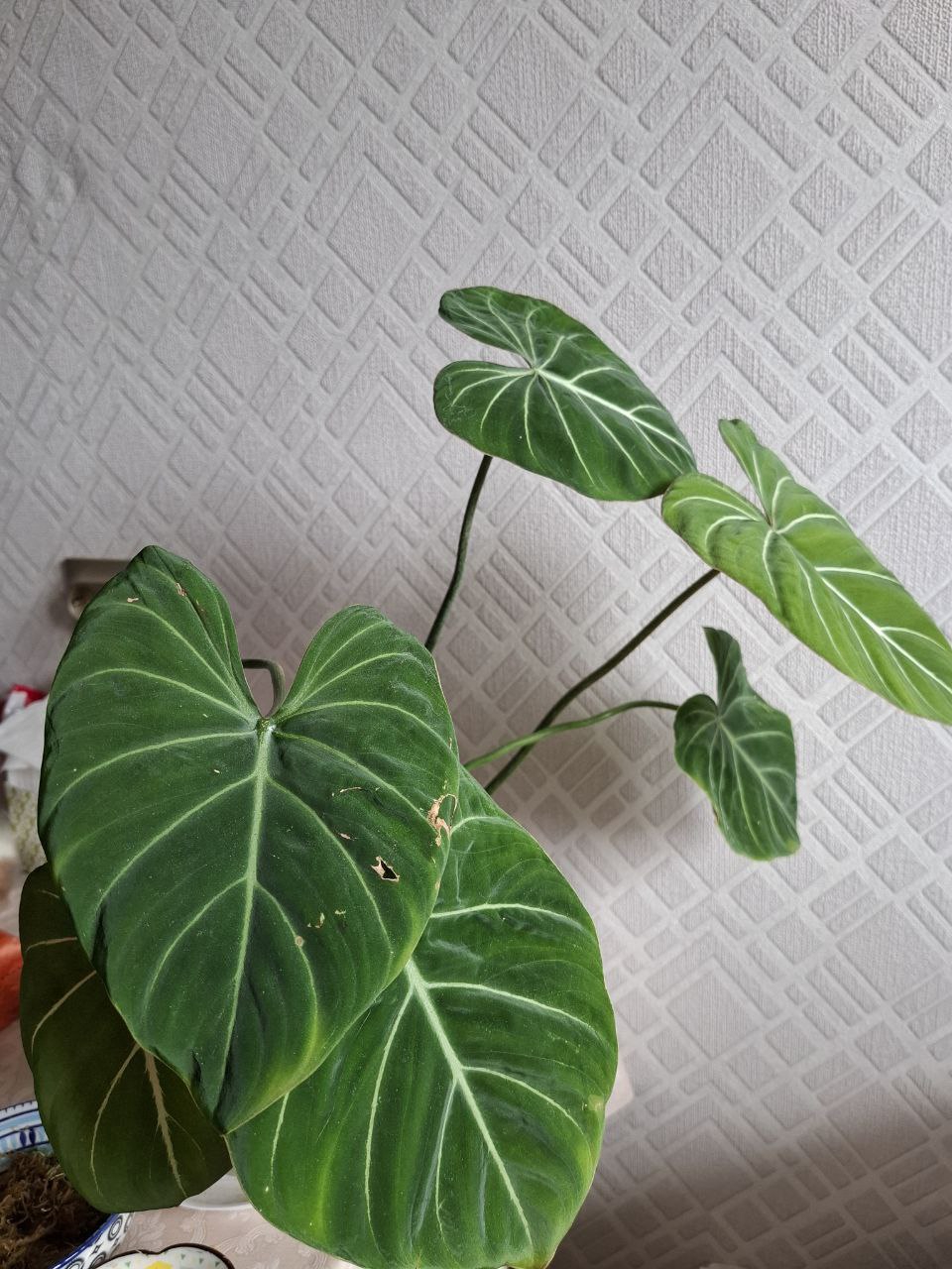 Есть филодендрон мамей, чот ему не нравится у меня, какие-то жёлтые пятна на листьях Стоит на ярком свету, но не под прямым солнцем, там окно выходит на балкон, то есть не жара, но я там ещё проветриваю В целом тоже могу подогнать кому-то