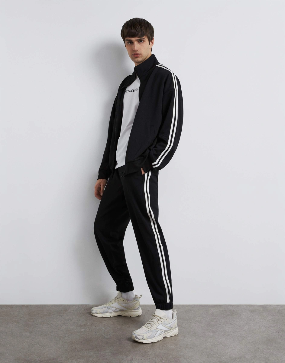 Одеваюсь как гопиха в спортивные штаны с лампасами, кроссовки, футболку и какую-нибудь толстовку (часть тоже с лампасами) вроде такого как на пике