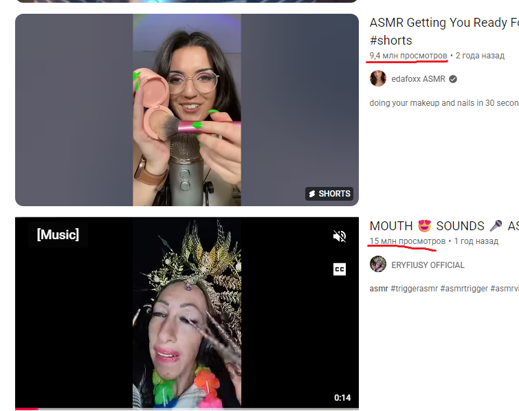 Заметила, что страшненькие асмрщицы выкладываются куда больше, чем конвенционально привлекательные. Если вижу асмр от тети сраки 100 кг, которая своей отросшей нарощенкой по банке майонеза стучит, то это мой выбор. Уж она там все ногти сточит, чтобы я по стулу сползла на пятой минуте