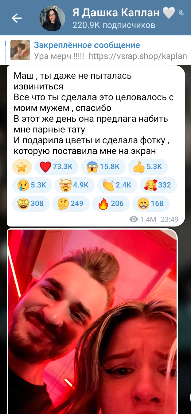 >>6299715 Меня этот момент смутил ещё на дасином интервью после развода. Она говорила, что ей казалось странным, что вот блик очень нежно успокаивал мармыху, когда она разрыдалась, и что они как-то уснули в обнимку и держась за руки. Такое тяжело игнорировать. Видимо была настолько сильно уверена в блике.