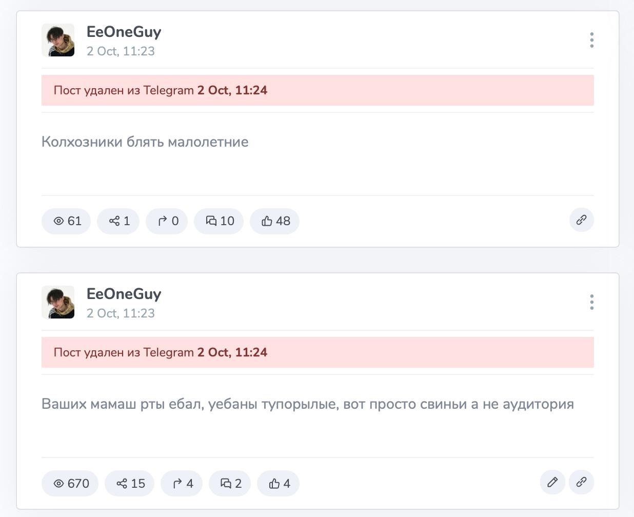 >>6300367 Ну и что. Мои взгляды меняются, я взрослею, у меня даже от настроения меняться может. Но дело не в этом. Я тебе снова пишу что любовниц пиздят не от конкуренции, вот представь у тебя без спроса спиздили ключи от тачки покатались и поставили га место под окна. На следующий день оно повторяется и так до бесконечности. Не то что твою тачку угоняют и ты ее лишишься, а просто то что охуевшая мразь пренебрегла твоими правами и чувствами. Кому эти любовницы помойные вообще хоть грош значат лол. Жена всешда в приоритете