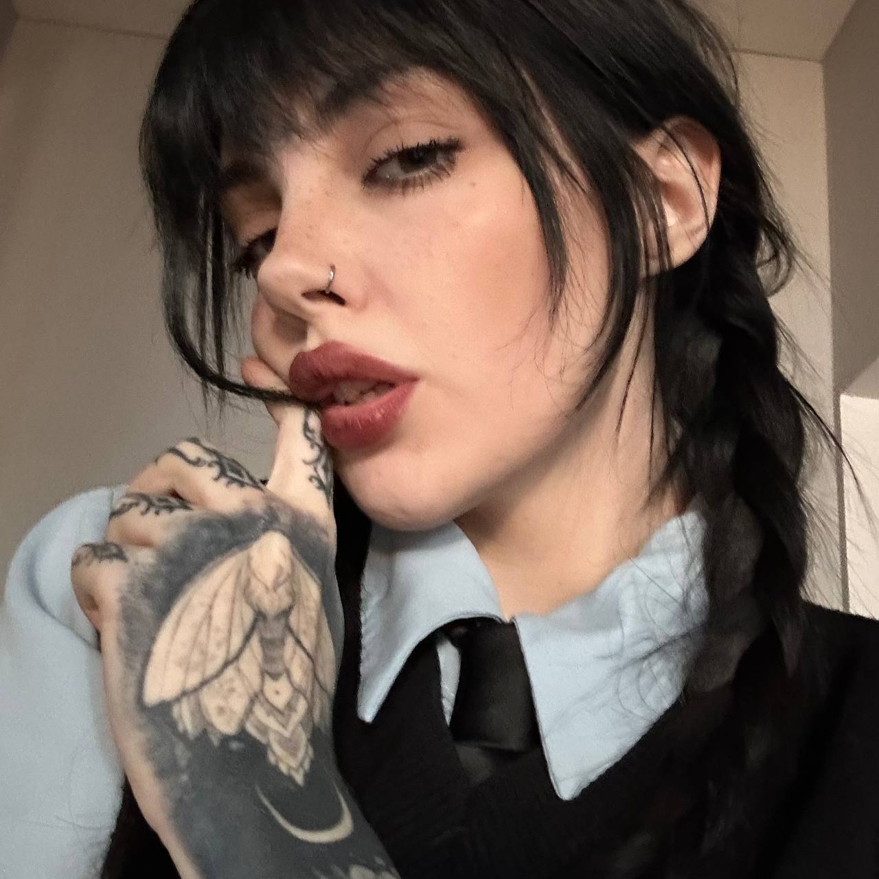 Имхо, но Мармыш просто руинит свою внешку неудачным образом альтушки. Вот например, на первом фото она с родным цветом волос, без мейка и с маской на лице, но намного симпатичнее, чем на второй пикче, где от нее веет вайбом зловещей бабки (ни мОдНыЙ сплит с сединой, ни стрелочки с ресничками ситуацию не спасают)