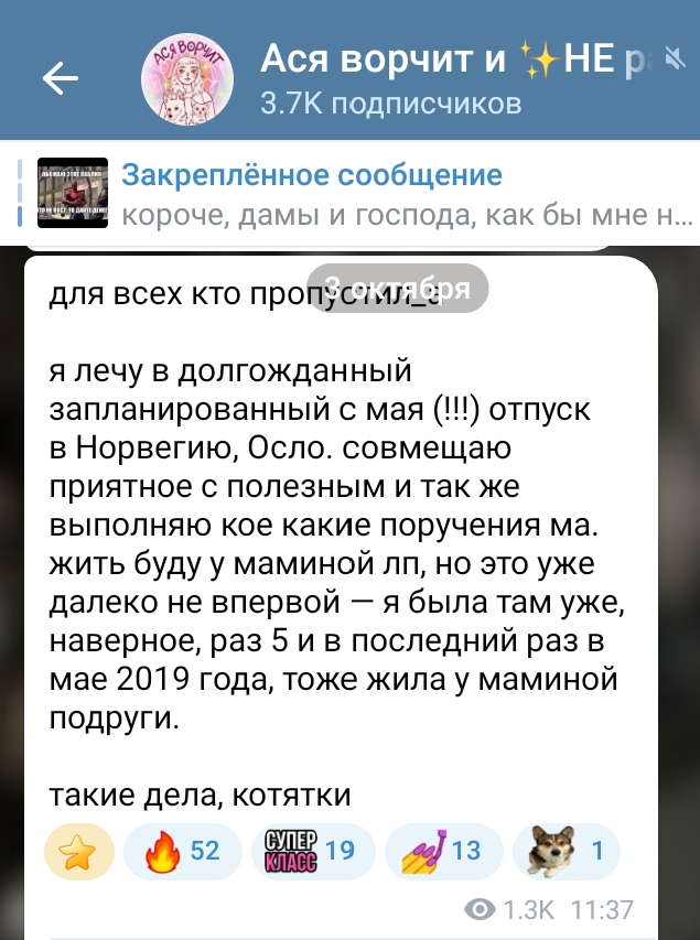 Наша пчелка труженица прибыла в заслуженный отпуск в Норвегию. Устала бедненькая. Кушает лосось и орет с хомяков, которые каждый раз верят, что у нее нет денег