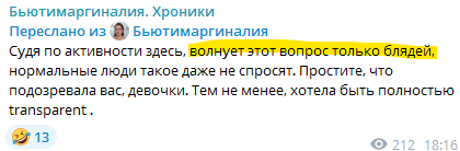 В том чате сидели намного более не нормисные тянки. Как бы тот факт,что Рита не додумалась сидеть с фейка уже говорит о неком нормисном, наивном доверии к миру.