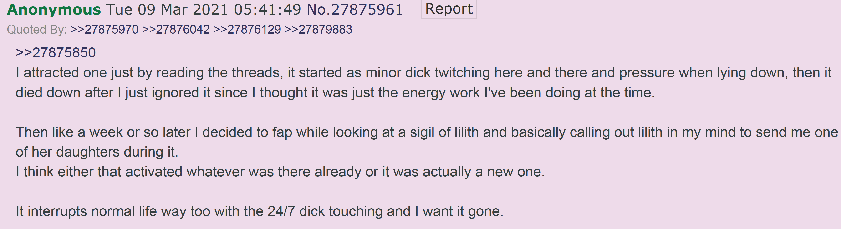 Вообще как-то хотелось задрочиться на форумы насчет магии ещё глубже. Но из интересного находила только чьи-то дневники с ебанутыми призывами, но на памяти только один. Может кто-то тоже находил как тип писал о опыте как в монастыре олимпийского духа Бетора вызывал и изучал его
