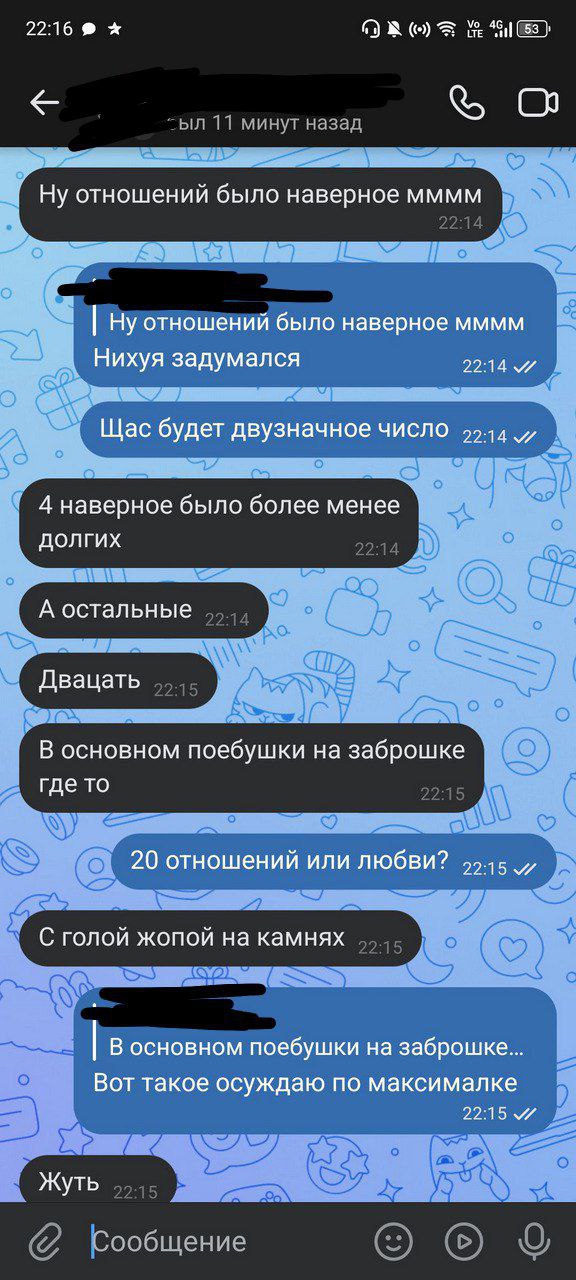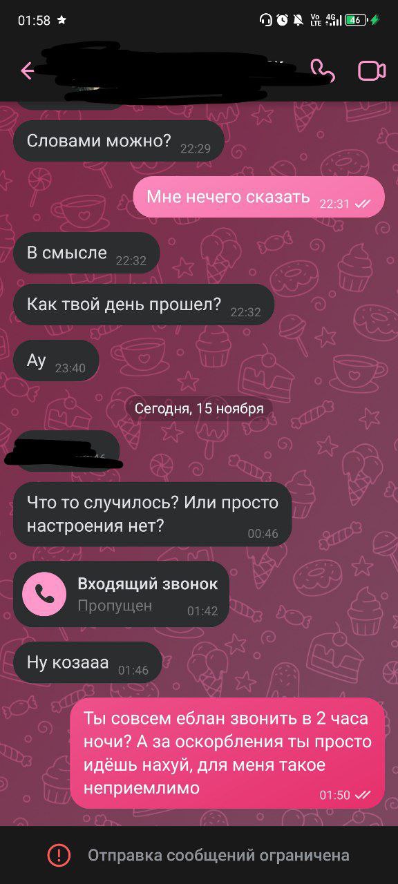 Весь треш и не наскринишь (те же дикпики по кд), но сейм. Тоже лайкаю,общаюсь и так до тех пор, пока не спизданет что. Но я так устала от этого, когда у тебя по 20+чатов с хуями и каждый пишет высер всех форм и размеров.