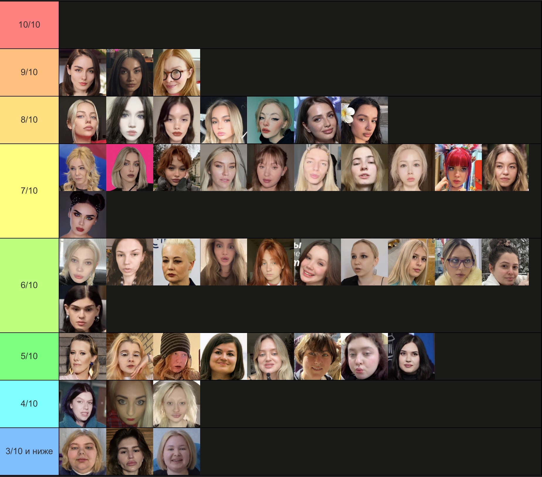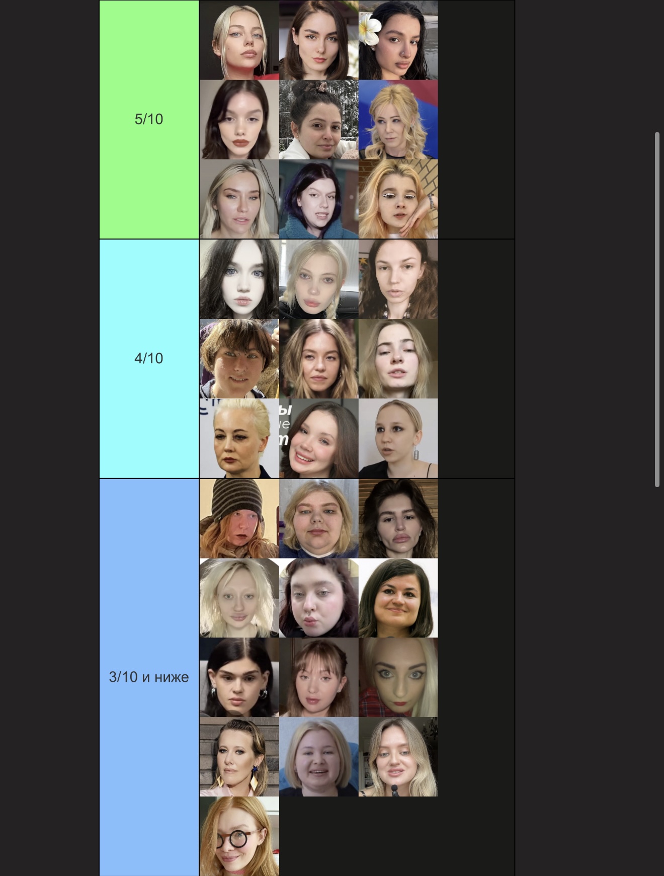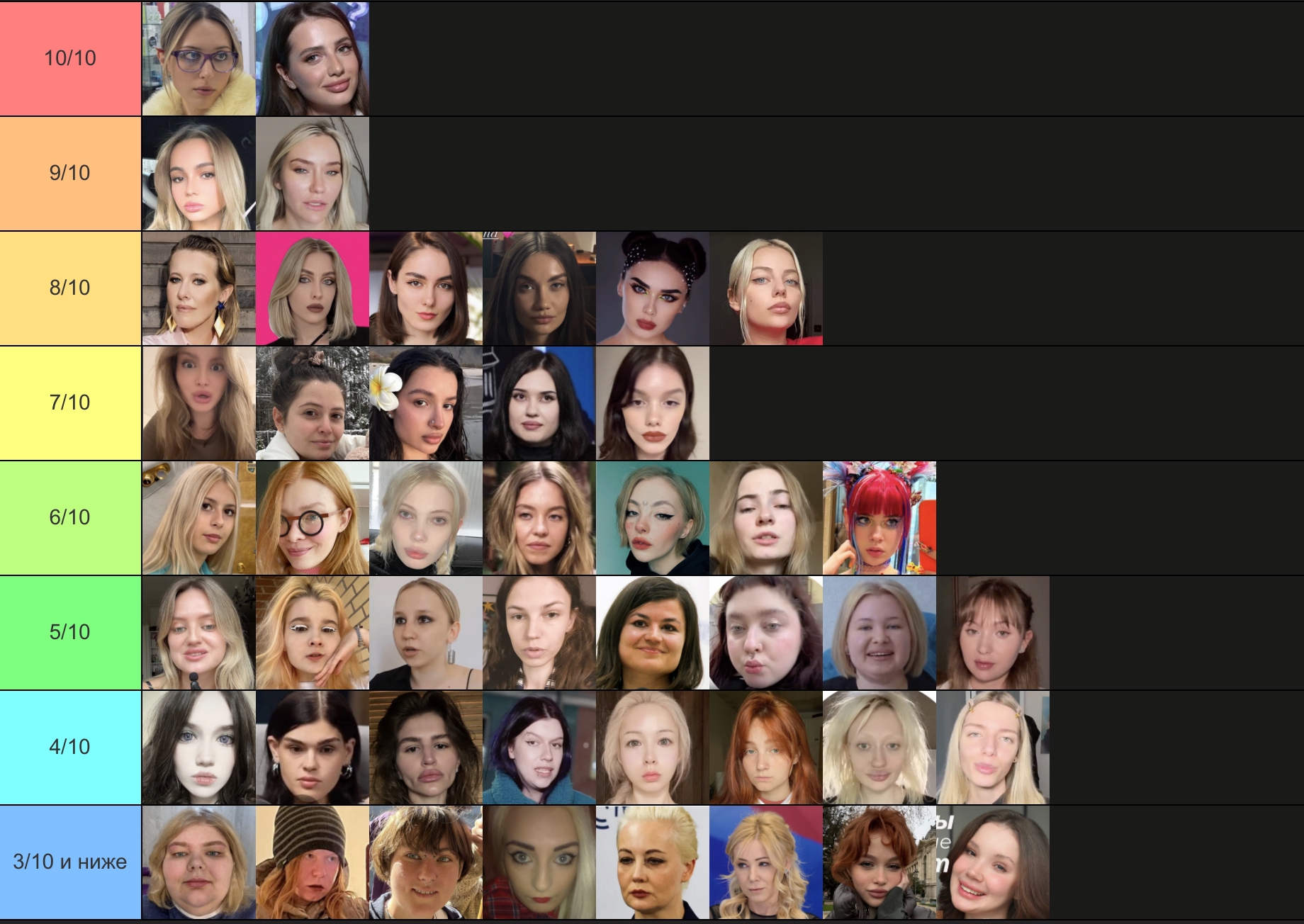 Бл, не успела. Но ладно. Попробую, попытаюсь объяснить. Для кого-то это возможно будет оправданием. Половину из этих девушек я не знаю, могу судить только по фото, что были представлены. Выбирала субъективно, просто по своим каким-то предпочтениям. Капланиху я не уважаю, как человека, и никогда не интересовалась ею, кекала только со срачей, которые были с ней связаны. Но её внешка мне +- нравится. Дроча на Кищук я не понимаю, в целом, она внешне как-то меня отталкивает. Фанаткой Клэп никогда не была, да и вообще её никогда не смотрела, но в целом, как по мне, черты лица у неё гармоничные. Про всех остальных хз, что сказать. ИМХО