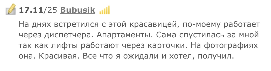 >>6346074 Почему отзывы на проституток пишут так размыто ? Это всегда так? Получил то, что хотел. А чё хотел то, в подробностях нельзя написать. Как про рандом тянок писать, так они все мерзейшие эпитеты будут использовать