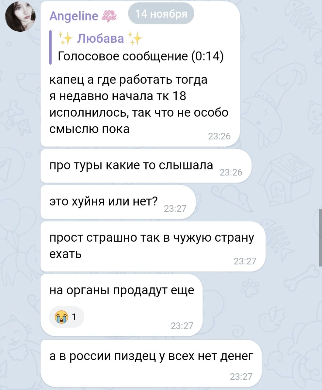 >>6346434 Не знаю, вроде бы нет, я пару лет назад нашла эту тему, прочитала за счет того, что были эпичные истории от проституток, которые юзерки багини приносили. Но да, в целом тема очень грустная, таких тян только пожалеть.