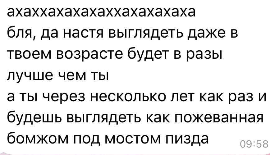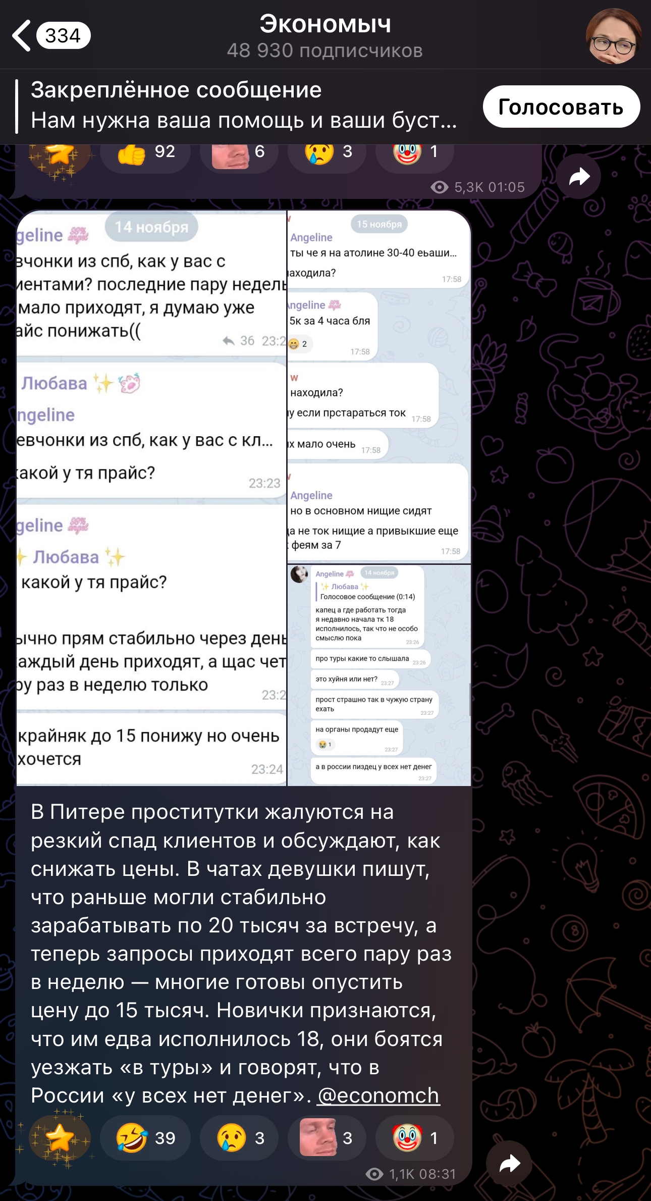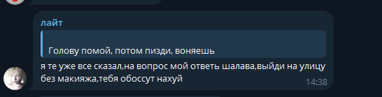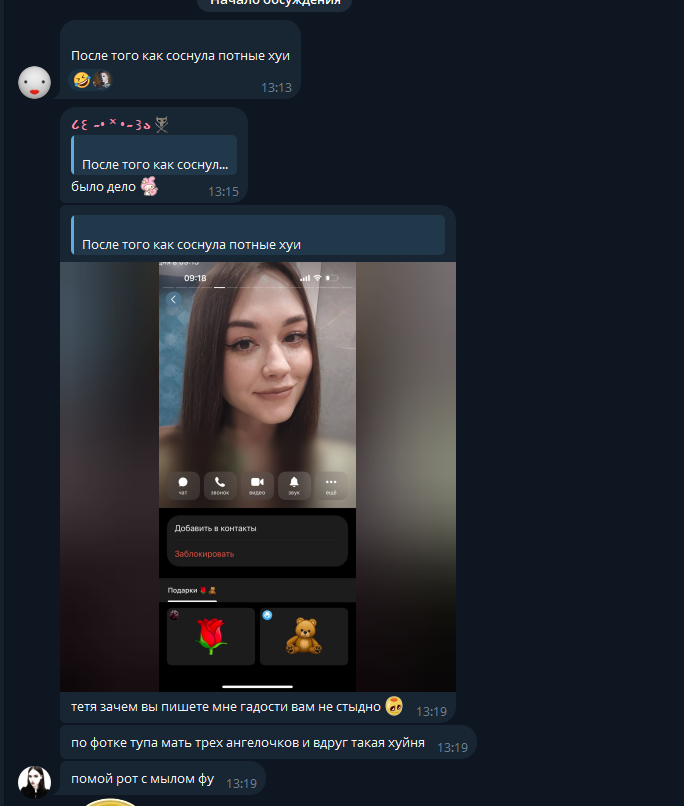 В последнем посте в тг караморы начался сущий кошмар. Пришла базированная тян и стала шеймить за пиздоторговлю. Рой семиклассников во главе с боссом-анимеунитазом ополчились на нее, защищая проституцию (это разве не статья в рф?). Причем пиздят ровно так же, как защитники чмораморы тут: «ты старая/страшная/завидуешь». Долбоебы прям не палятся, что не вылезают отсюда