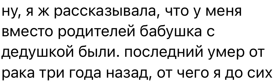>>6347431 Выше скрин, типа на нее забили хуй. Вот на этого молочного поросенка с фото из детства, которые ее мама бережно и методично выкладывает в вк, чтобы показать гордость и любовь родителя, чтоб ты понимала. Вполне вероятно, что да, могли ездить, и детей оставляли, а карамора из этого сочинила драму для публики а-ля я ела траву меня не любили родители