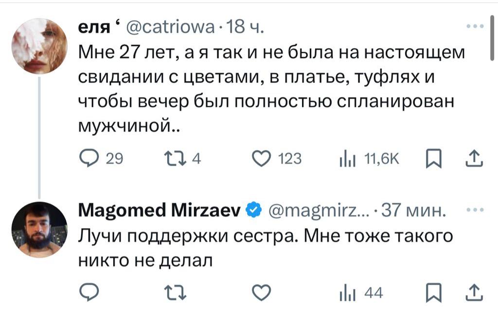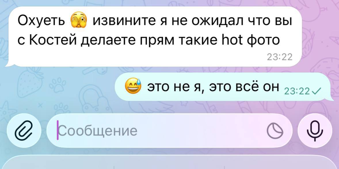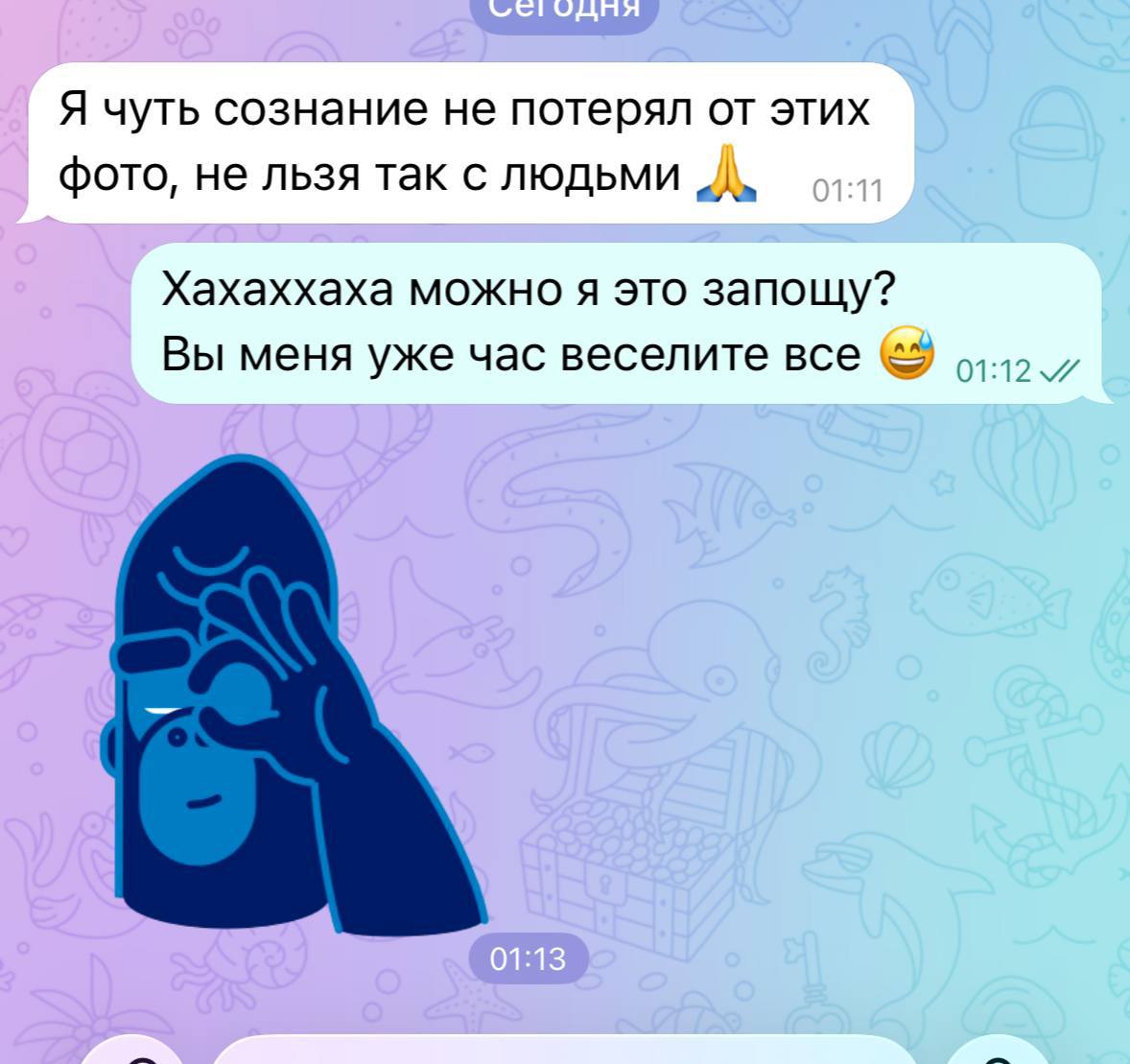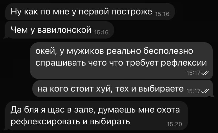 >>6345352 В дв, лол Он не кидал тело, только ебало своё. Да просто чето пообщались по душам, он грил мол будет меня мотивировать спортом заниматься и чето слился по итогу, он интроверт как и я, не хочу писать и навязываться...грит работает много (гидом), приглашал приехать Ну норм чел, эрудированный и на внешность ничё так