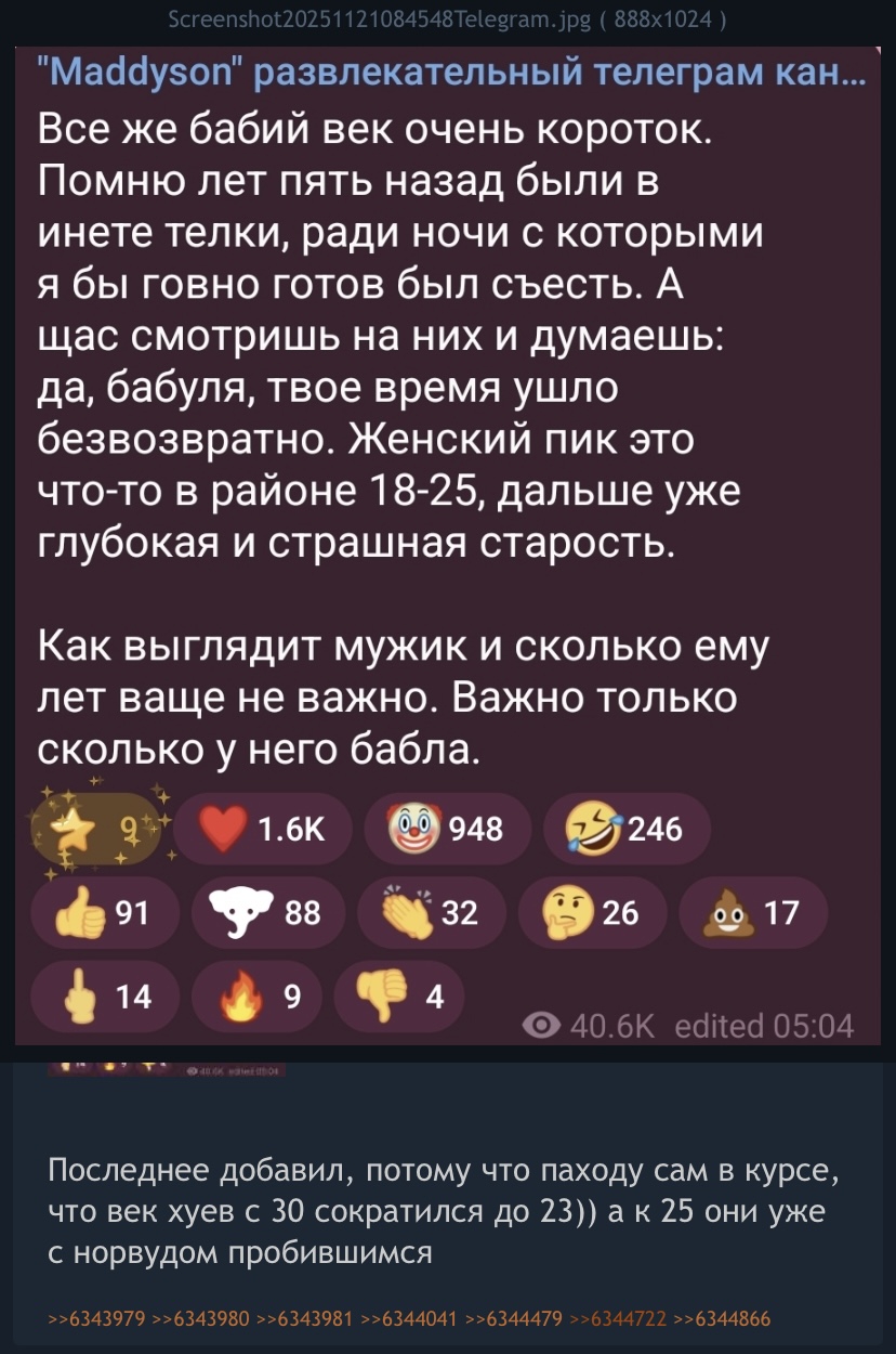 >>6343976 Классика. Дедуля увидел первые морщинки в зеркале и перешёл на ударные дозы копиума. Ожидаем его сливы с сз в разделе истеричных скуфов, которые злятся в личку молодым девушкам, почему они кекают с него, а не идут давать письку ебать.