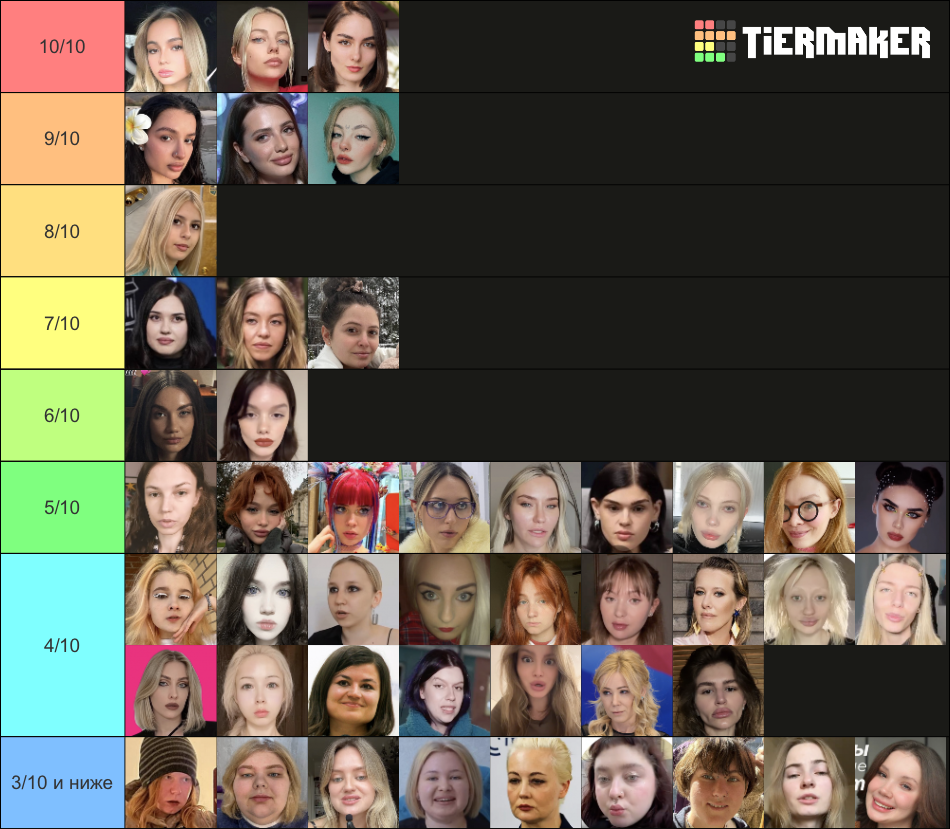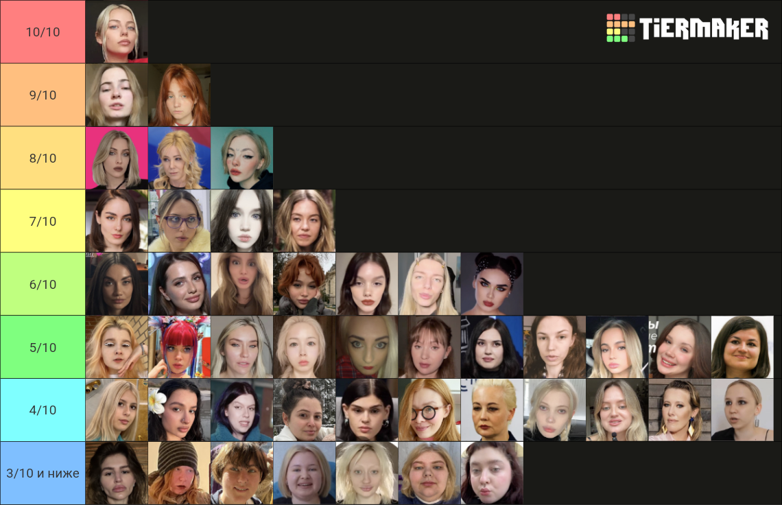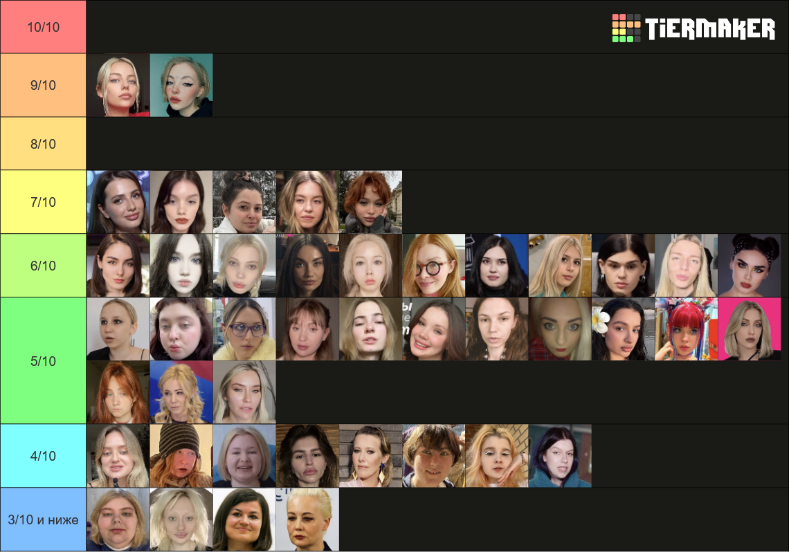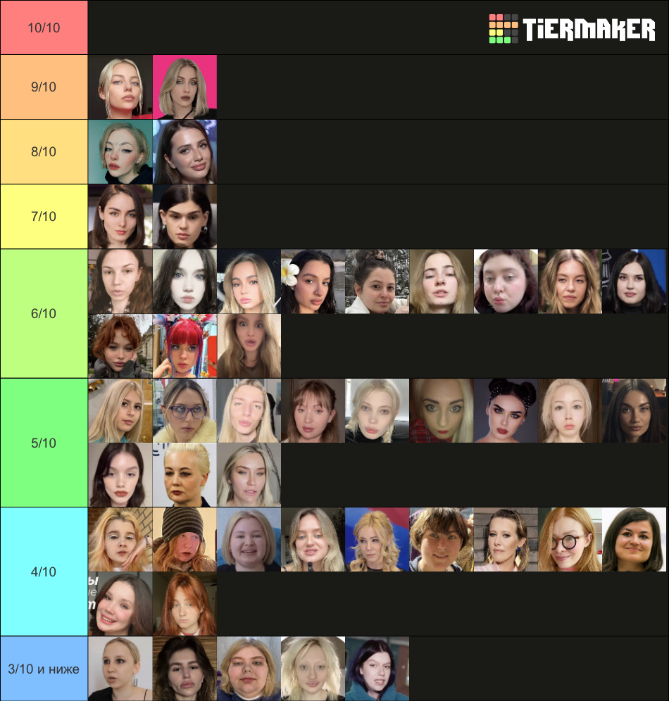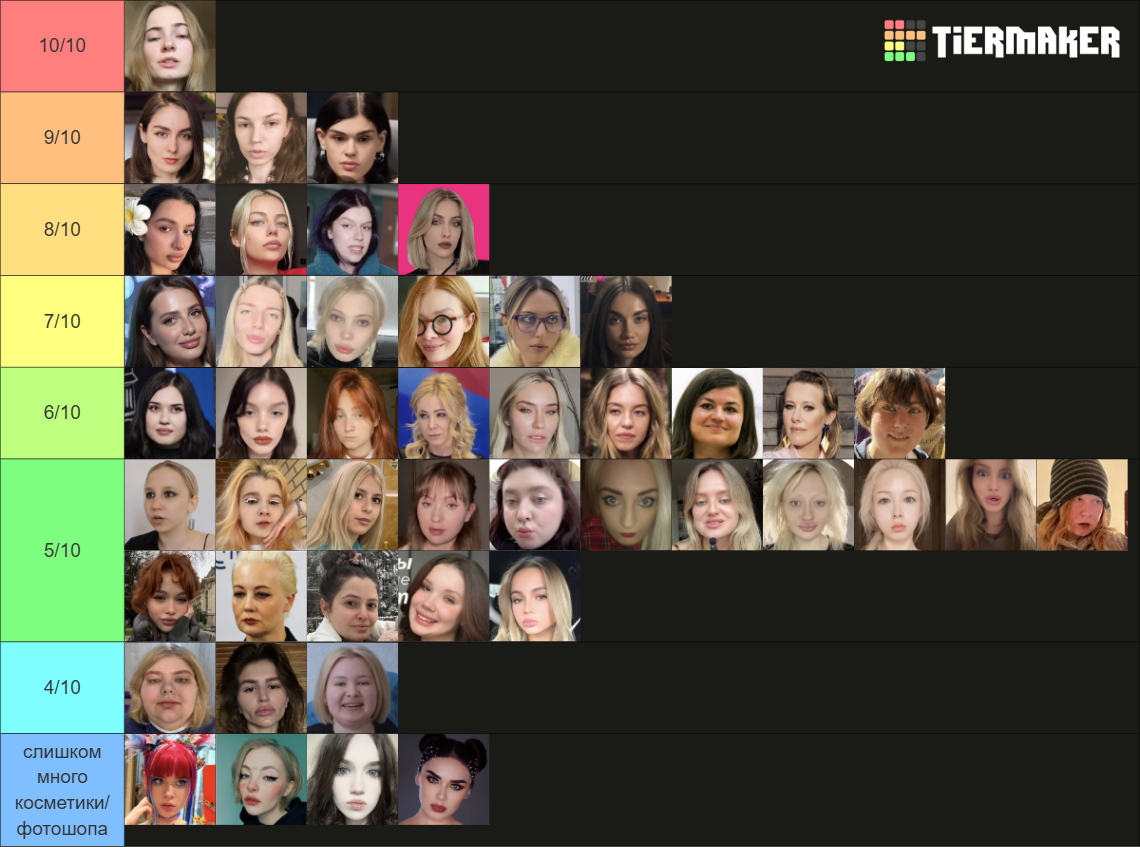 Я создала тир лист, специально добавила эту дебилку 5/10 за которую тут так отчаянно вступаются. Давайте проходить. Не знаю как вы сисы, но если сравнить до и после накачки губ, мне лично больше нравится ДО у 99% девушек. Доказывайте что хотите, у меня не тонкие губы, просто нормальные, ну примерно как у караморы до накачки ей вроде мало вкололи, ну или еще гель не успел мигрировать, может ее пронесет. Ухоженность не всегда = красота. Красота это глаза за которыми есть интеллект, это здоровье, гармония черт лица. Но точно не процедурки. Иначе бьютимаргиналия была бы на 10/10 ))))