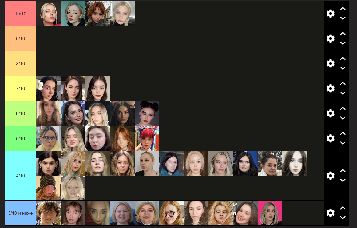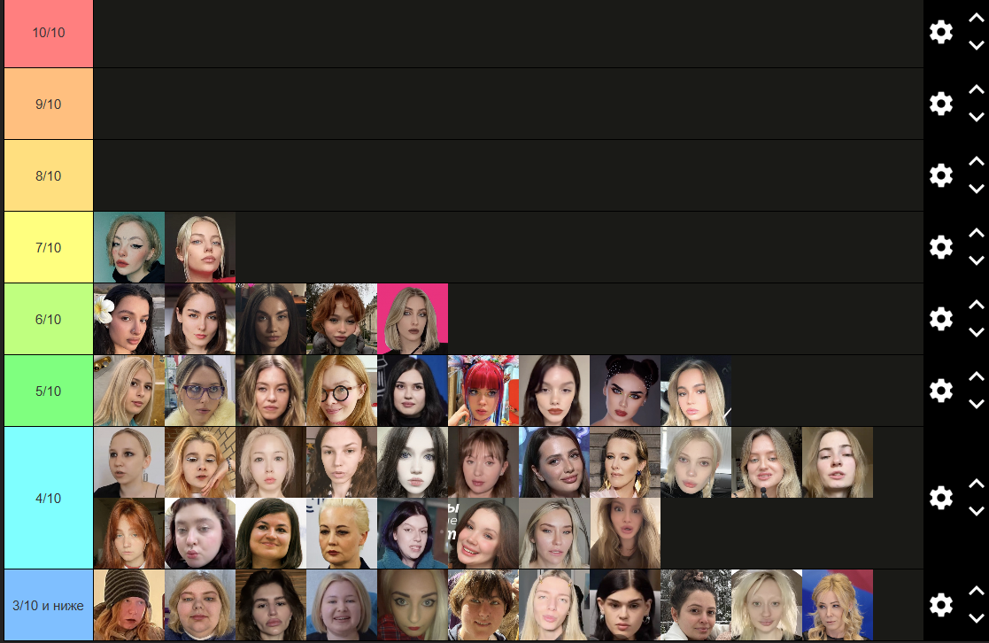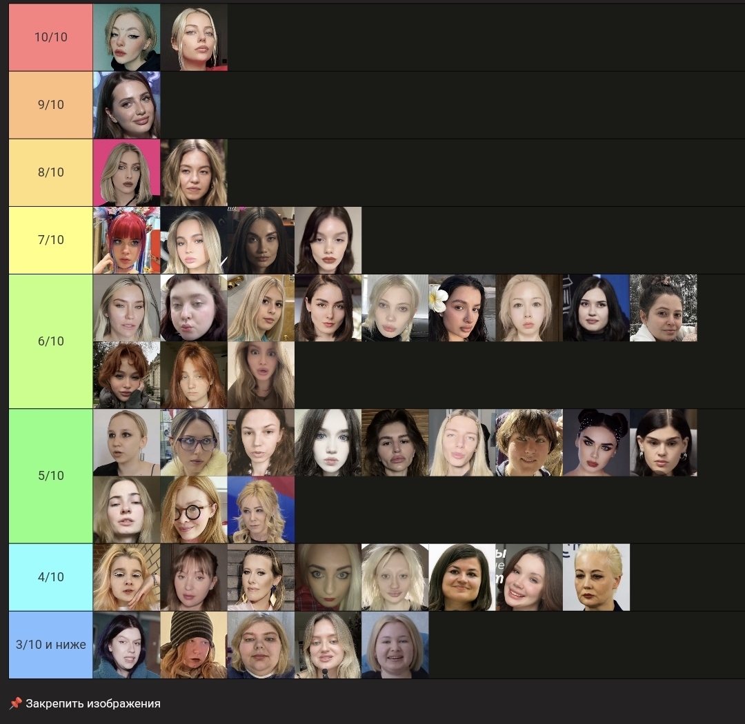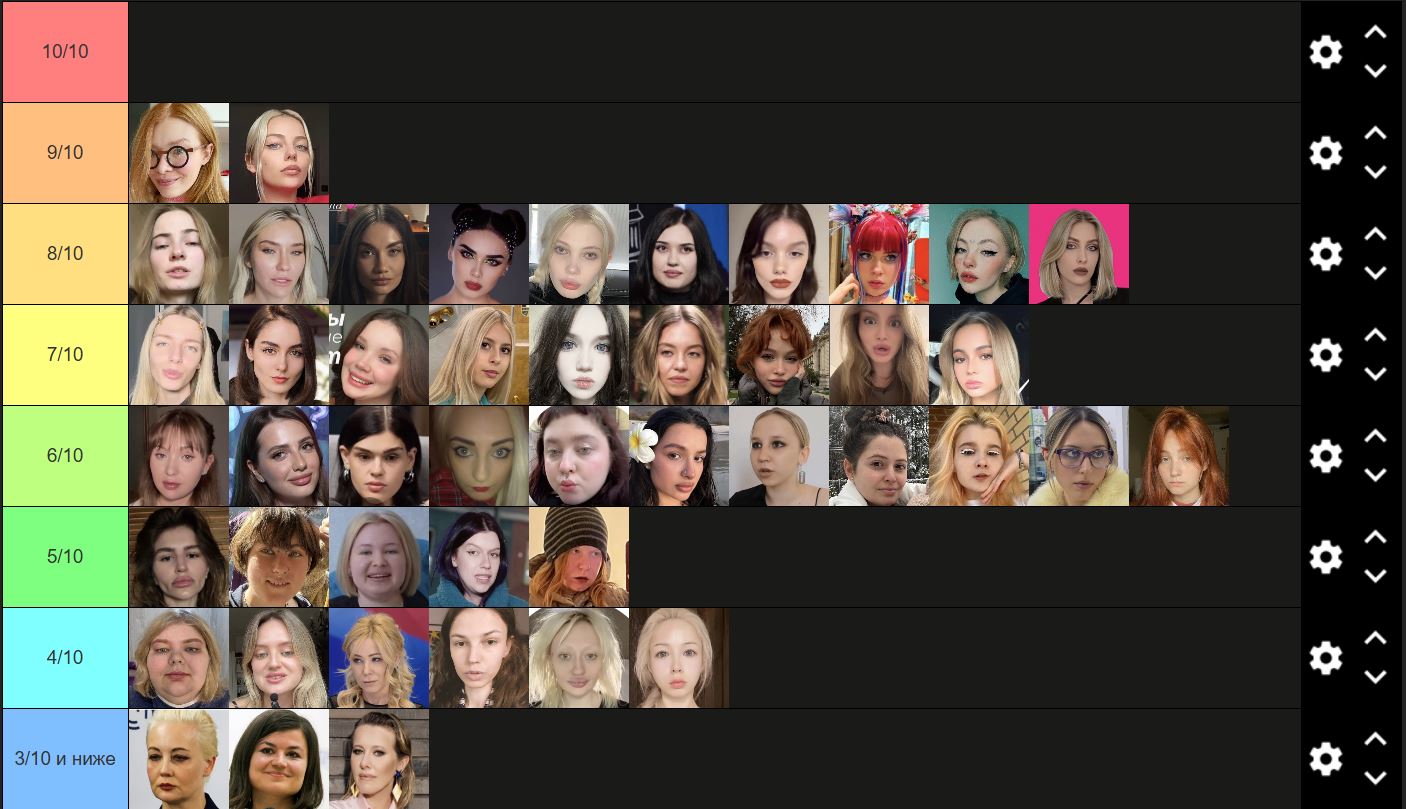 Я создала тир лист, специально добавила эту дебилку 5/10 за которую тут так отчаянно вступаются. Давайте проходить. Не знаю как вы сисы, но если сравнить до и после накачки губ, мне лично больше нравится ДО у 99% девушек. Доказывайте что хотите, у меня не тонкие губы, просто нормальные, ну примерно как у караморы до накачки ей вроде мало вкололи, ну или еще гель не успел мигрировать, может ее пронесет. Ухоженность не всегда = красота. Красота это глаза за которыми есть интеллект, это здоровье, гармония черт лица. Но точно не процедурки. Иначе бьютимаргиналия была бы на 10/10 ))))