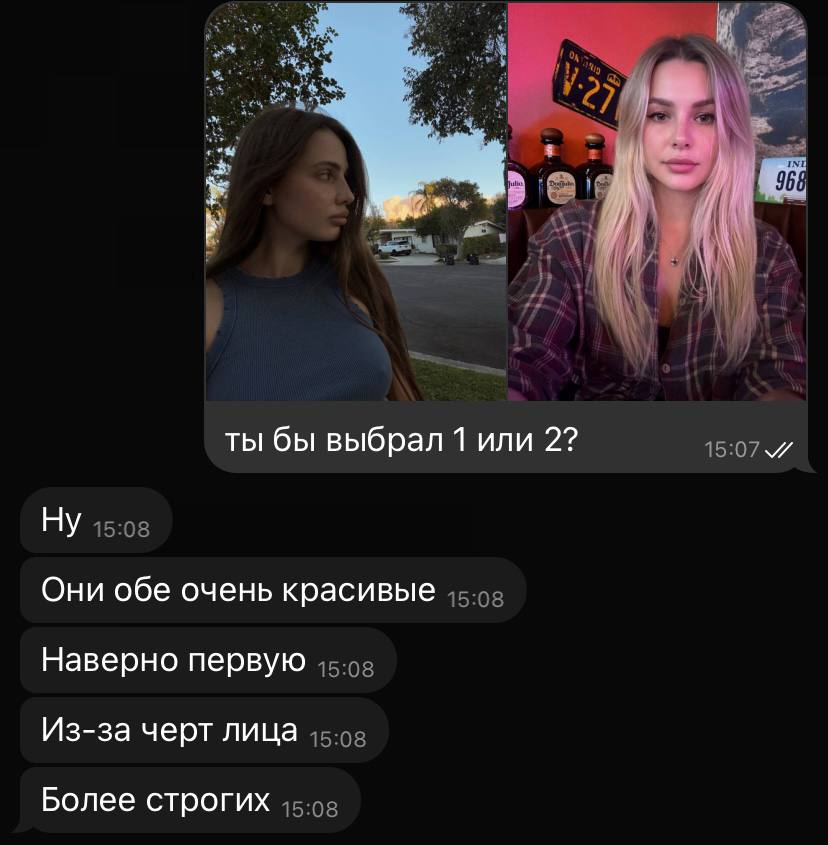 Сорри за оффтоп, а вы когда-нибудь думали, какую тян выбрали бы для женитьбы, если бы были куном? У меня это прям слабо получается, просто про кого-то я думаю, что тян прикольная и вайбовая, у кого-то могу оценить фигуру, но в целом даже типаж не могу представить, типа была бы она вамп или традвайф