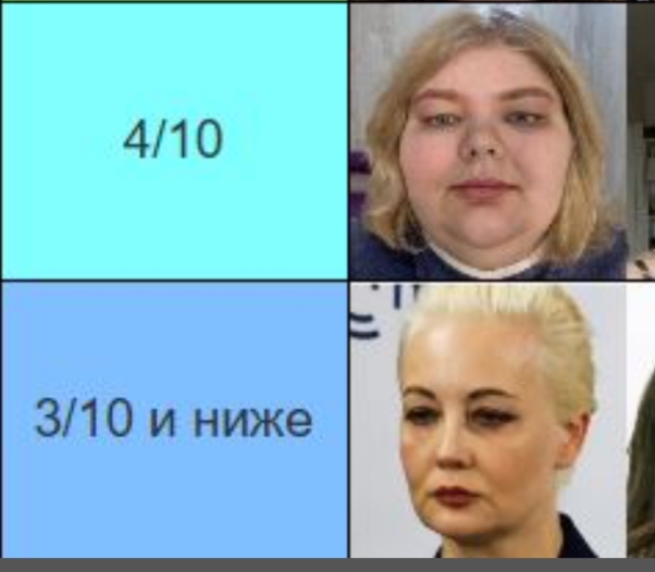 >>6345368 Блаженной фотку выбрали такую, что она прям всратка там. Хотя в жизни минимум среднетян симпатичная. А оценивает реально как типичный скупой чушок. У него получилась шести балльная шкала. Что подтверждает мою теорию, что чушки не могут в 10балльную. Хз нахуя они вообще ее используют. Им проще по 5 балльной оценивать. Или даже 3балльной